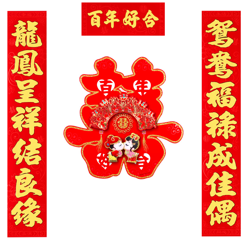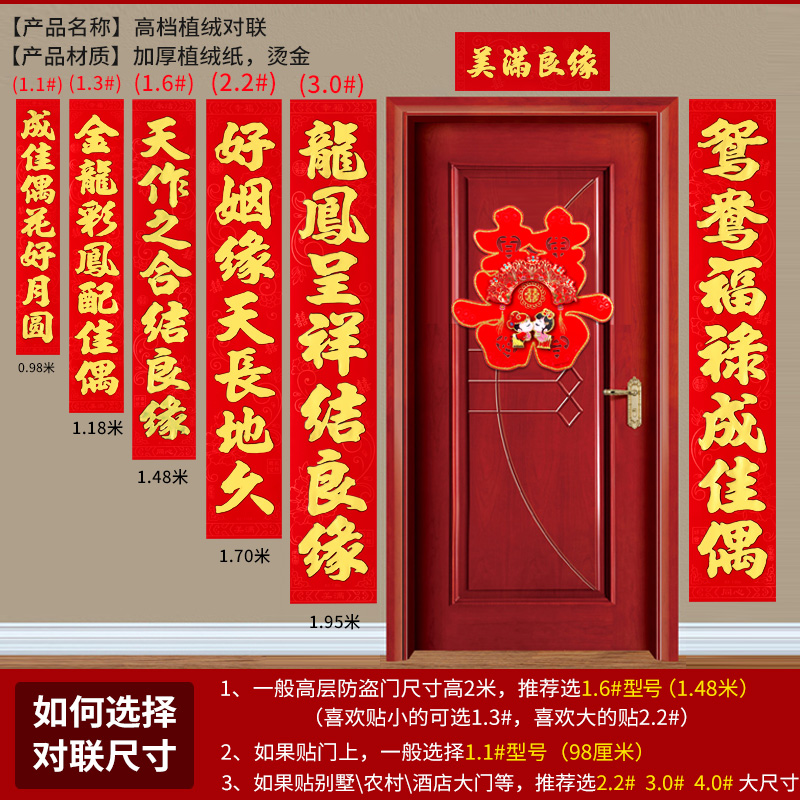Wedding couplets, happy couplets, wedding decorations, man's door, wedding couplet door stickers, woman's marriage, newly married wedding room decoration supplies