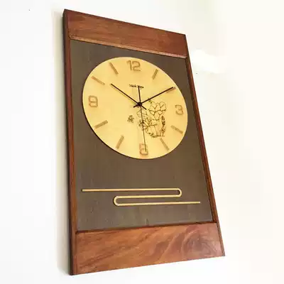 New Pinhui * Simple modern Chinese solid wood wall clock Zen living room bedroom mute quartz clock long square wall clock