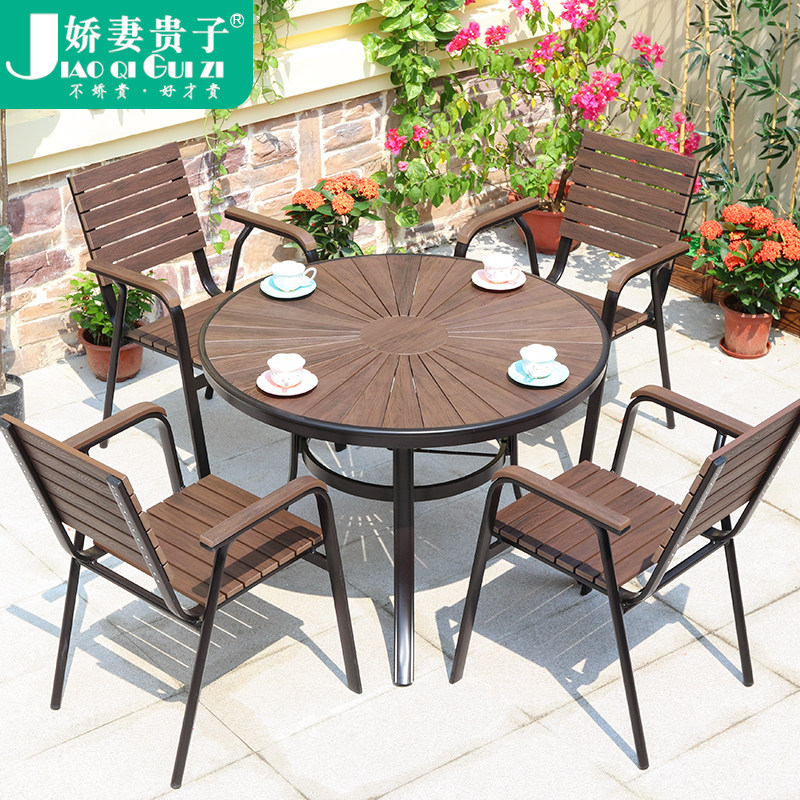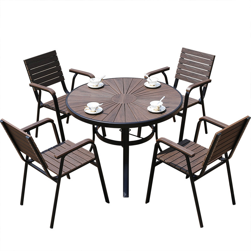 Outdoor courtyard Garden Open-air balcony Outdoor leisure tables and chairs Cafe outside the pendulum anti-corrosion wood plastic wood table and chair combination