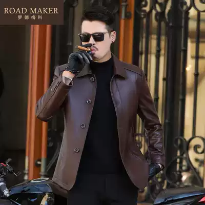 ROADMAKER Men's Business Leather Leather Men's Casual Men Men's Leather Jacket Men's Leather Sheep Jacket