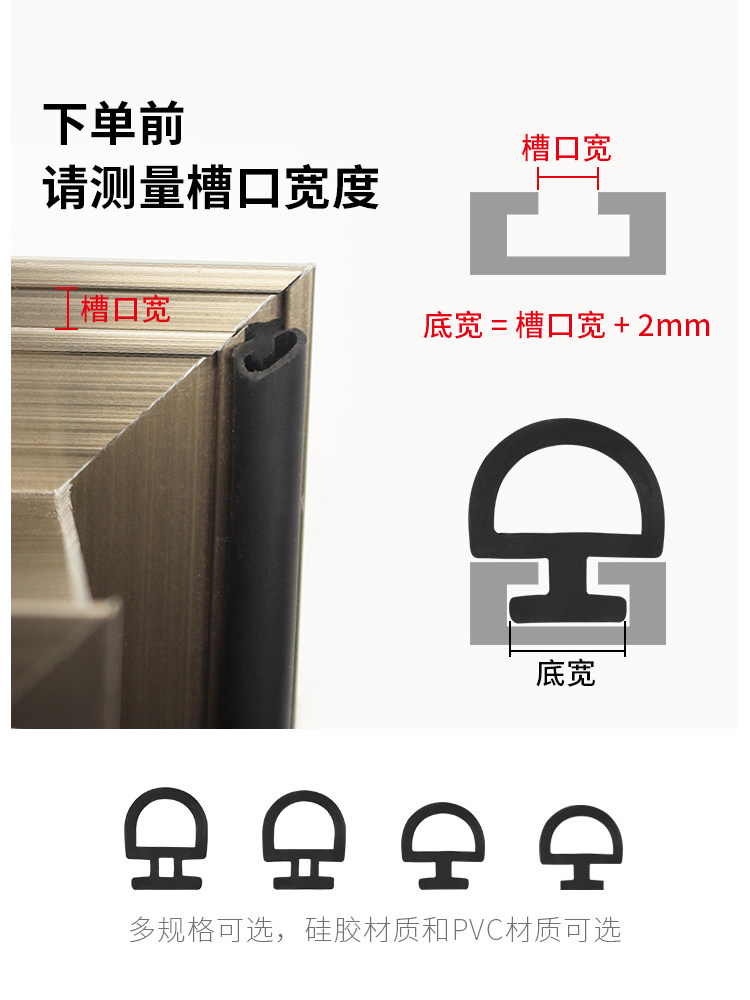 Type 50 aluminum alloy door and window sealing strip windproof and warm rubber strip color aluminum window sound insulation strip flat bottom card type