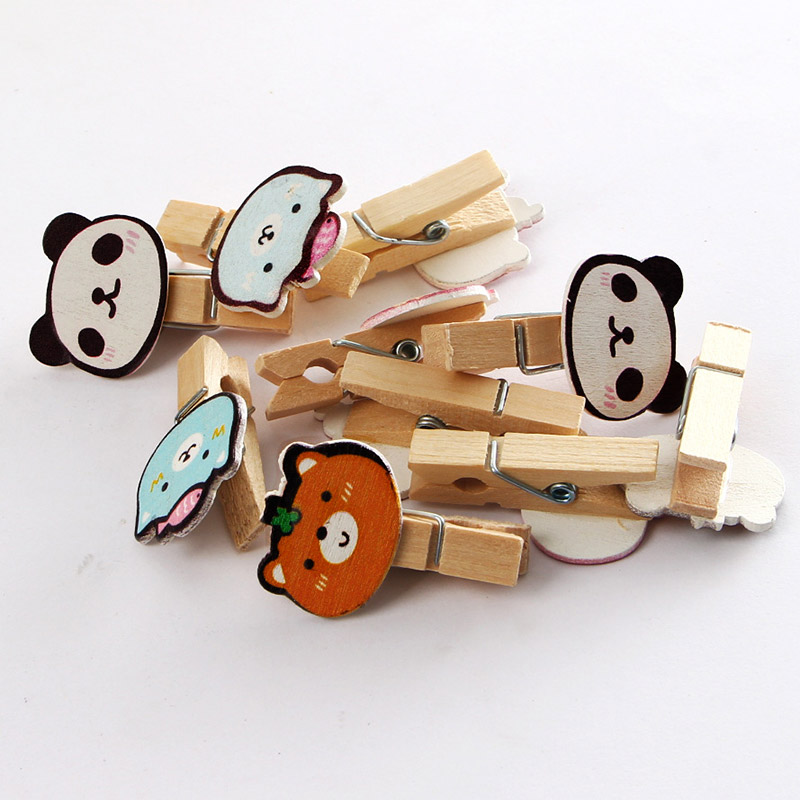 New panda wooden clip cartoon animal mini photo clip creative photo clip post-it clip to send hemp rope message clip