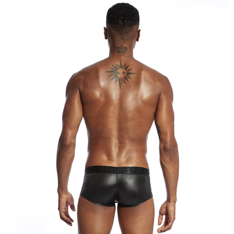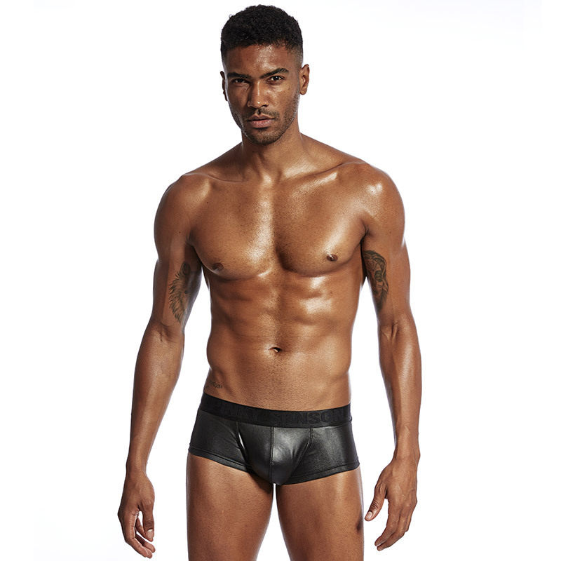 Four Corners Underwear Golden Frosted Black Leather Nightclub Sexy Briefs Leather Sensation Closets Men Tight Pants
