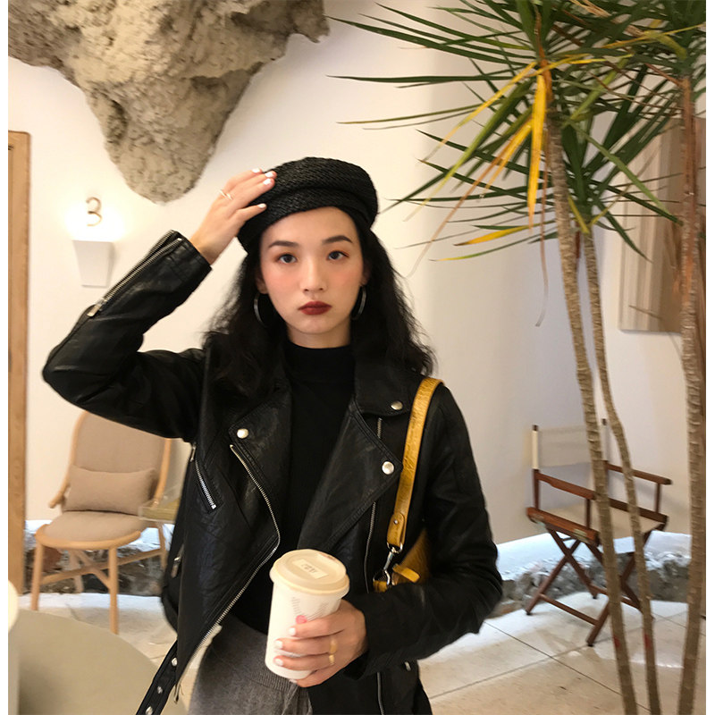 Luoluojie small leather jacket women's leather jacket short black 2022 new imitation lambskin slim locomotive autumn