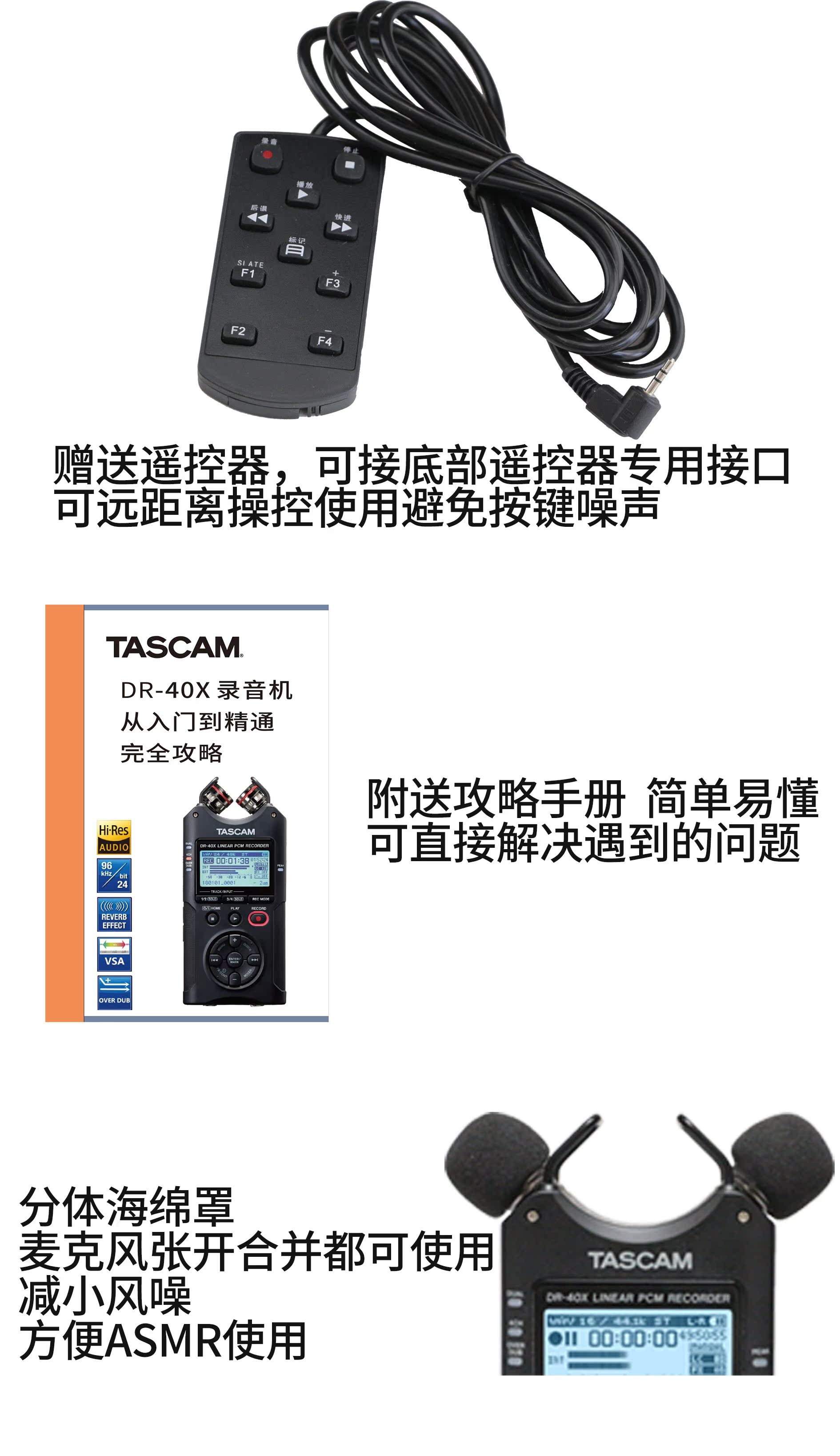 TASCAM DR-40X recorder DR40X Recording pen Microfilm Recording Guitar Playing ASMR