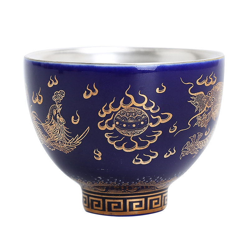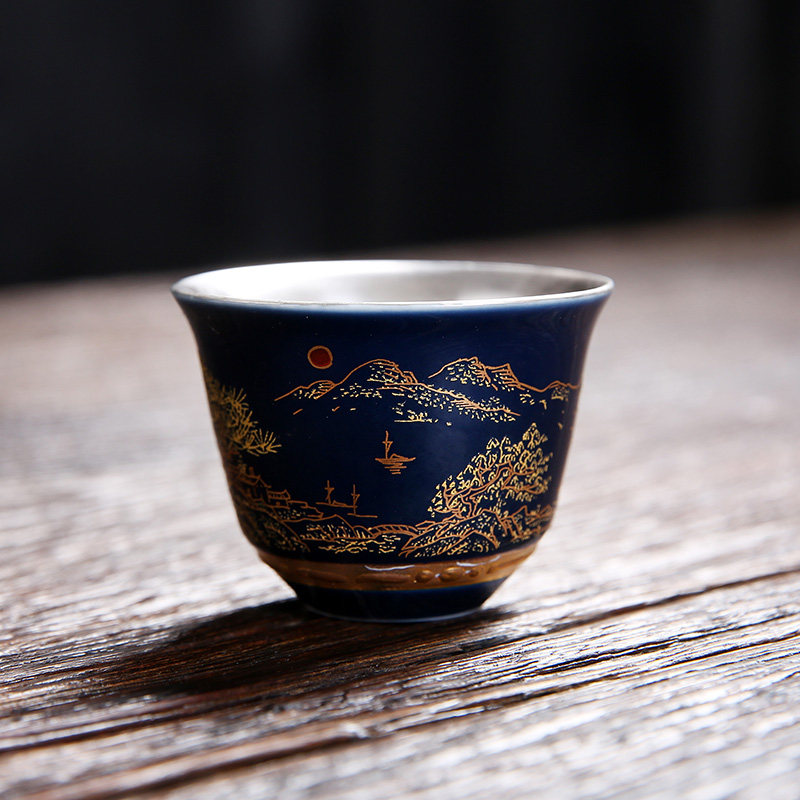 Silver cup tea cup 999 pure silver mug enamel color white tea tea set small number ceramic bucket hat-in-the-master's cup of tea