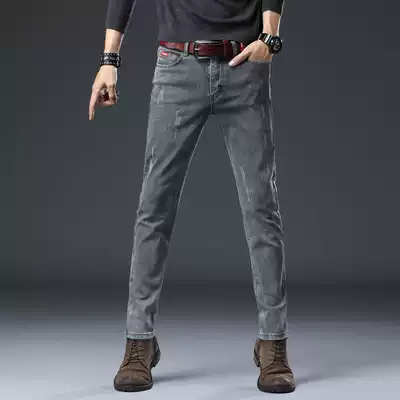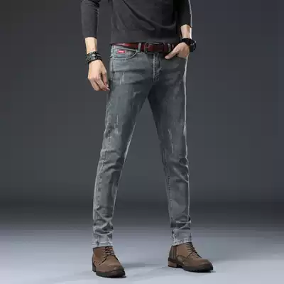 2020 Spring and Autumn New Jeans Young Men Korean Tide Brand Stretch Casual Gray Slim Small Foot Long Pants Men