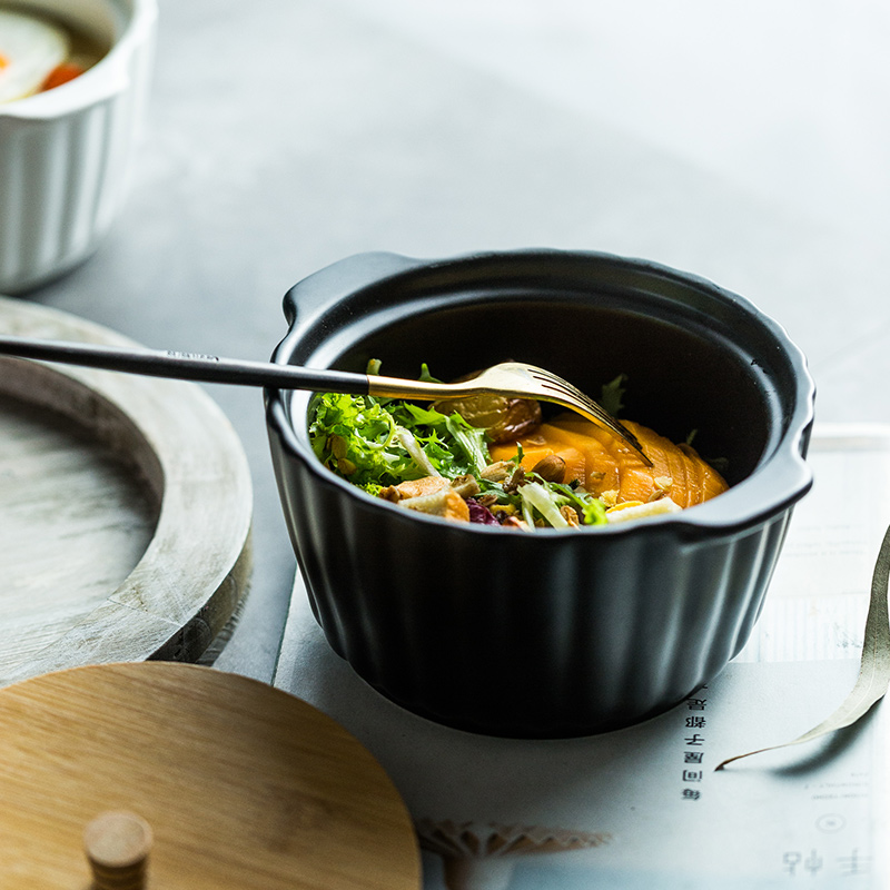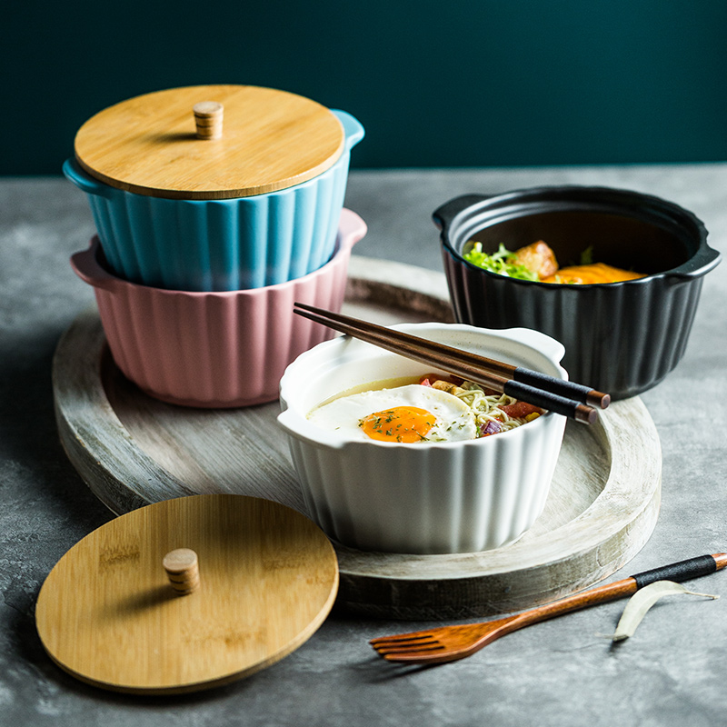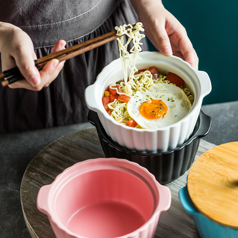 Nordic instant noodle bowl with lid creative soup bowl household ceramic bowl instant noodle bowl ramen bowl ceramic double ear bowl instant noodle artifact