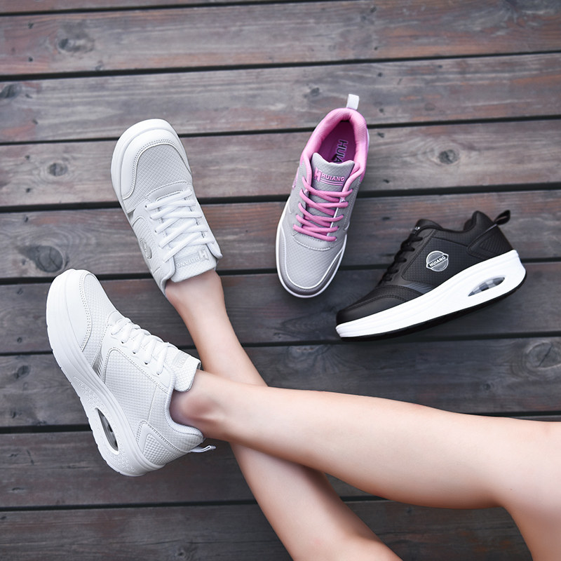 Female Shoes Sneakers 2021 Spring Autumn Season New Leather Face Casual Shoes Air Cushion Non-slip Thick Bottom Rocking Shoes Women Tourist Shoes