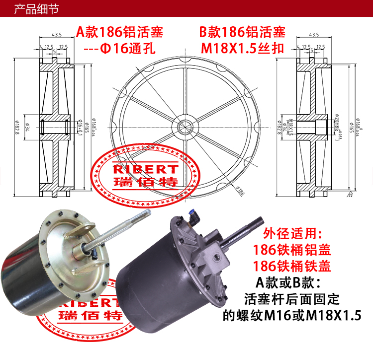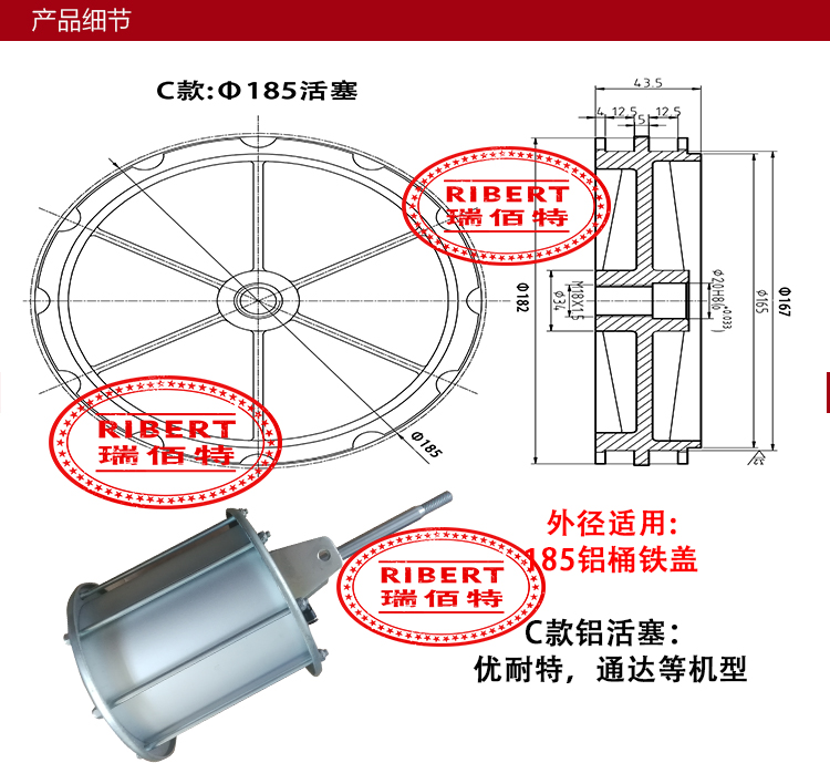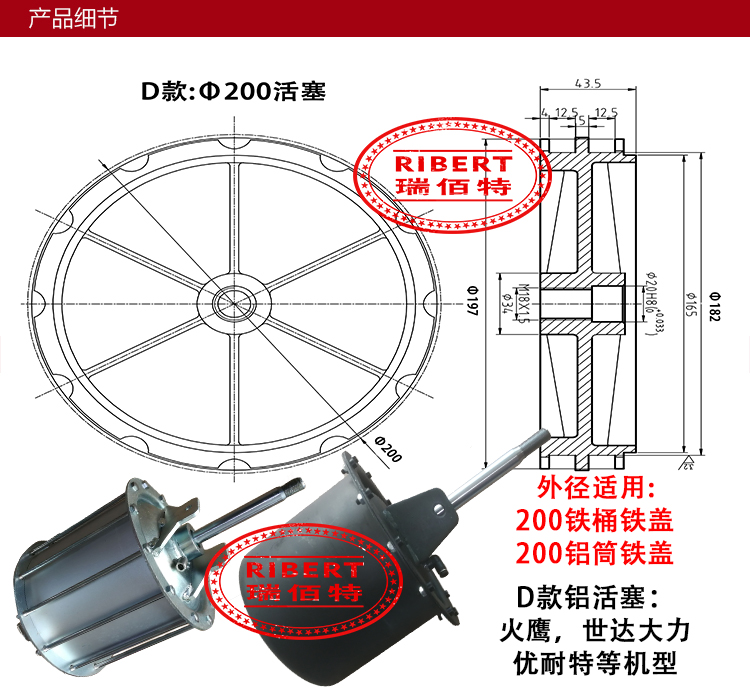 Tire removal machine large cylinder piston 186 200mm all-aluminum piston assembly tire removal machine accessories