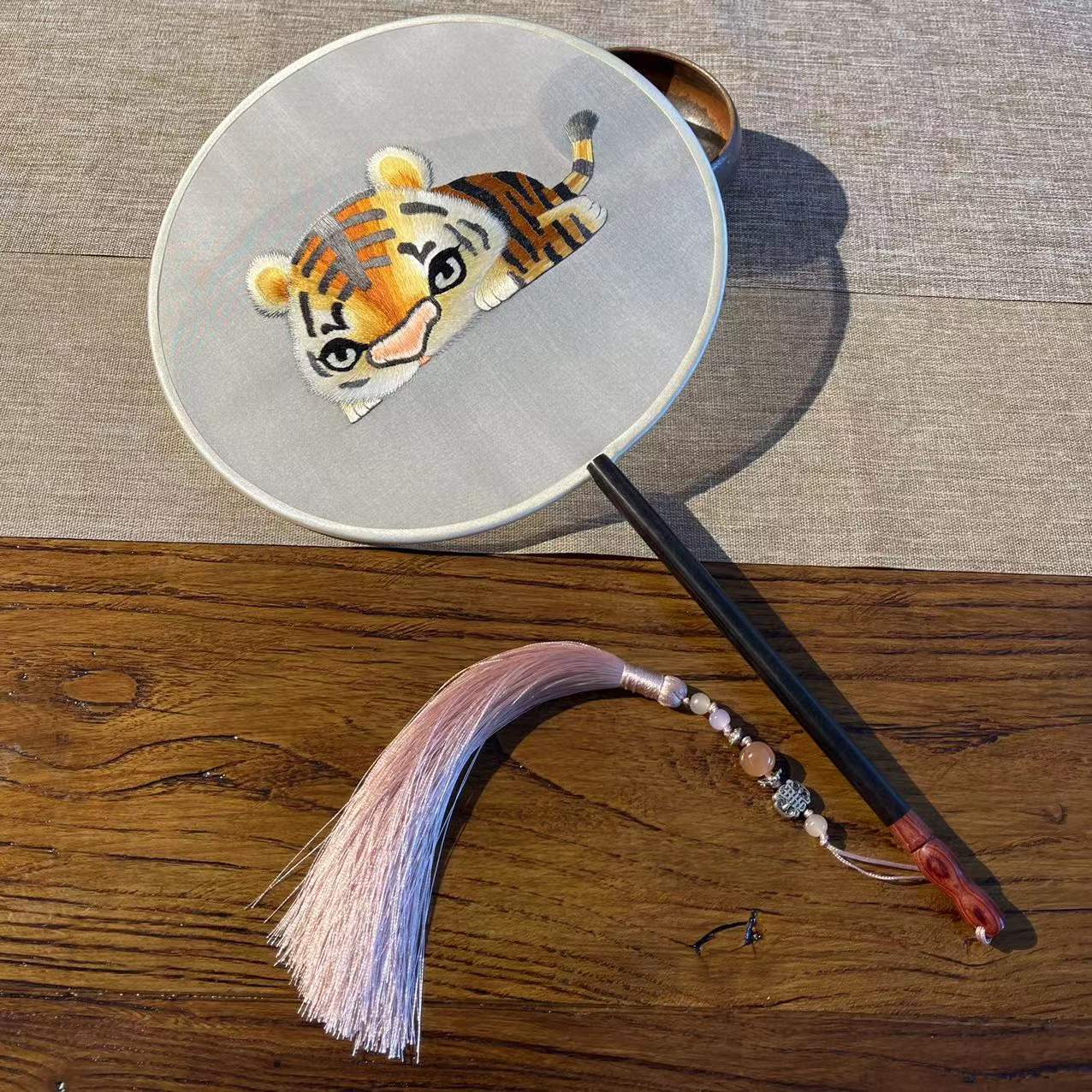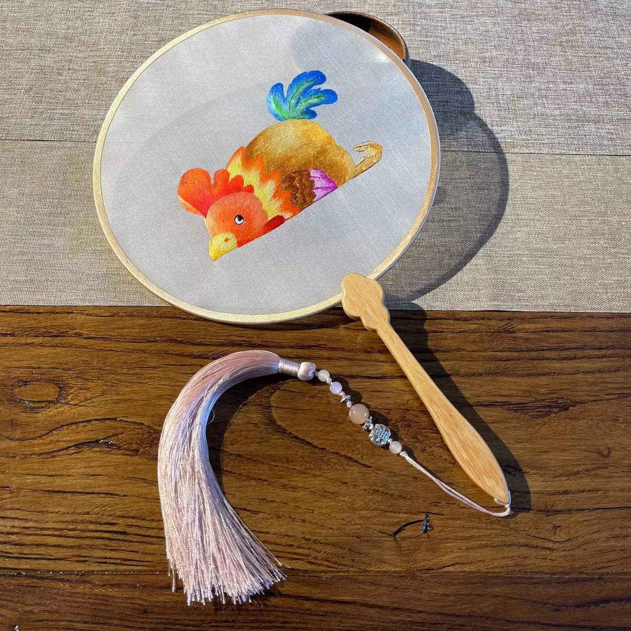 Zodiac Suzhou handmade silk double-sided Suzhou embroidery learn from me a round fan to send gifts abroad to foreigners