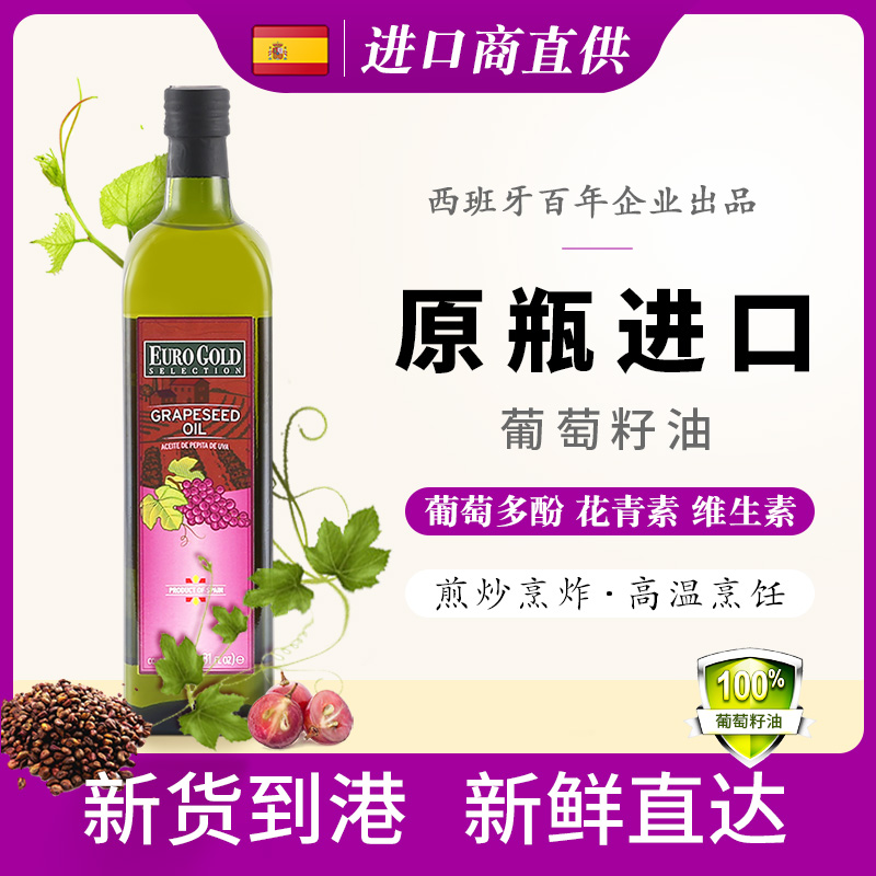 Euro Spain original imported pure grape seed oil cooking oil 1L containing anthocyanin skin care cooking health