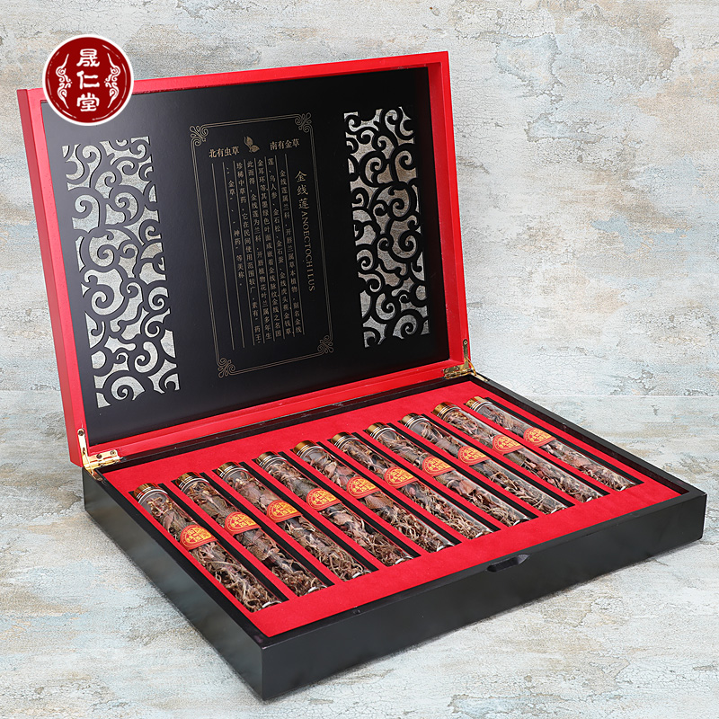 Sheng Ren Tang whole plant dry product of golden clematis with flower buds 50 grams wooden box gift box packing Fujian Nanjing forest original ecology