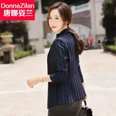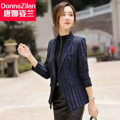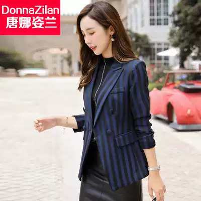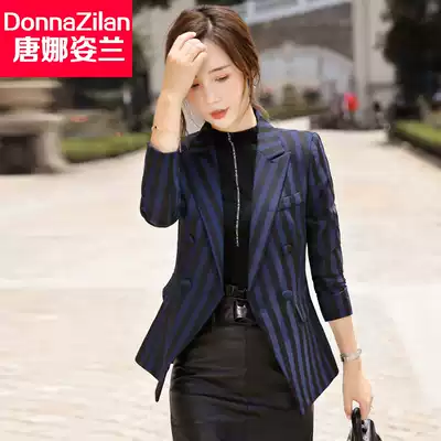 Stripe blazer women's 2021 new spring and autumn Korean version of high-end business leisure waist short small suit top
