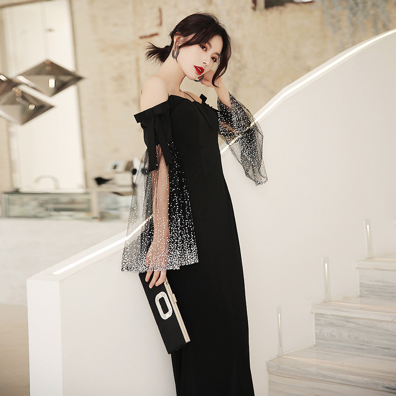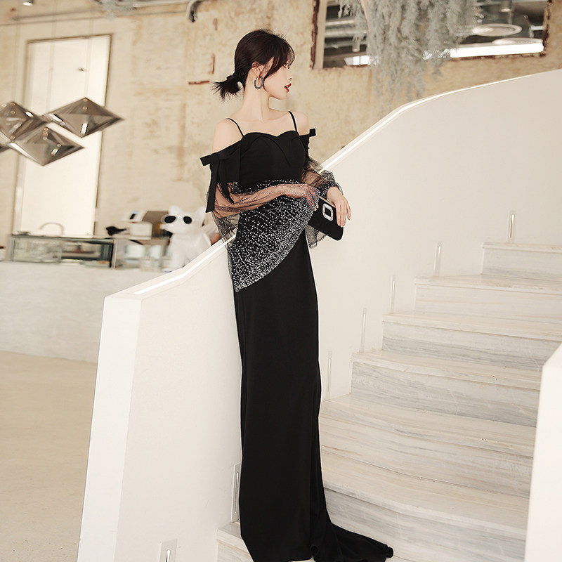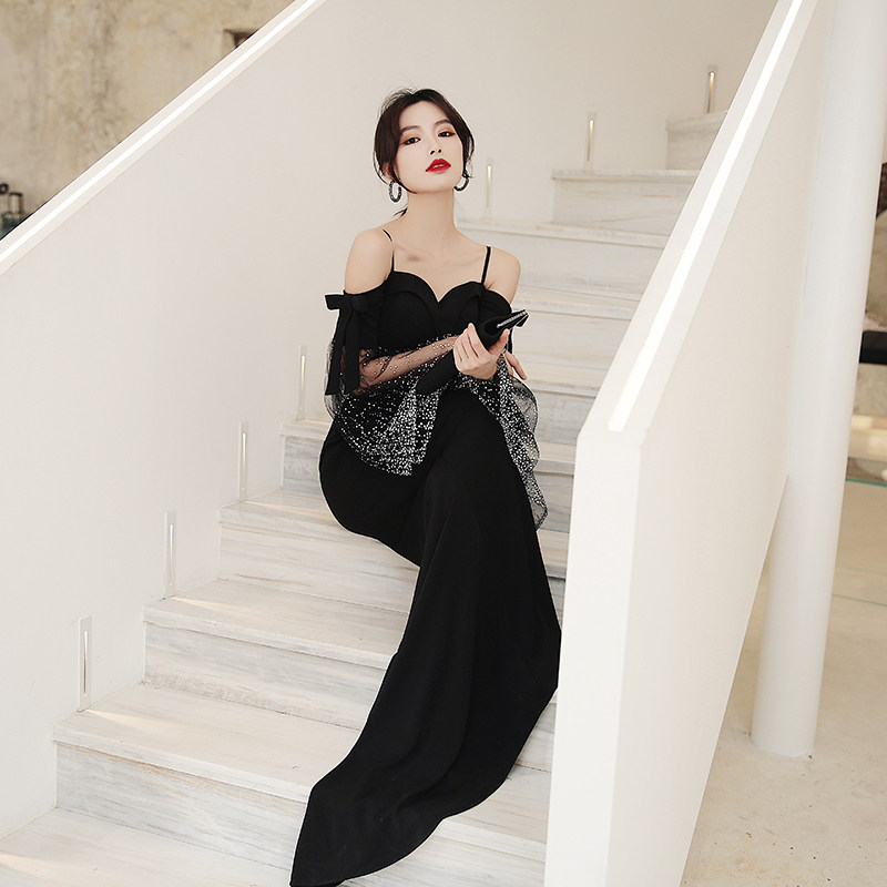 Black dress skirt female banquet temperament 2020 new annual meeting host lanky long version of the big high-end evening dress