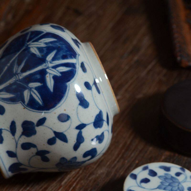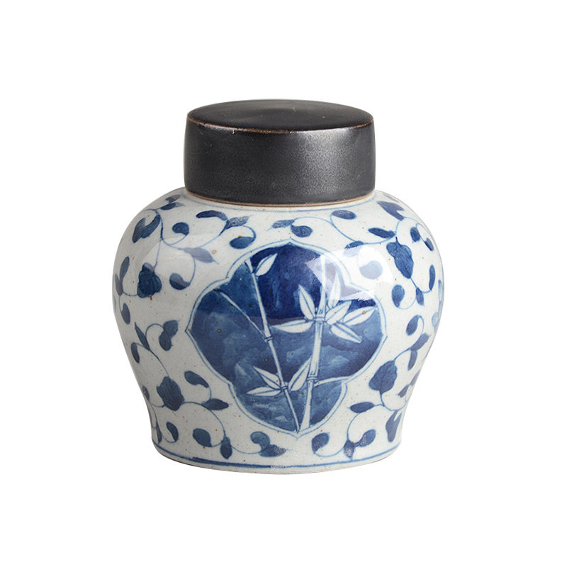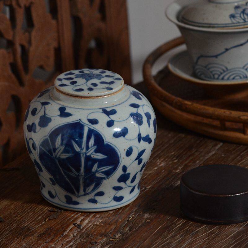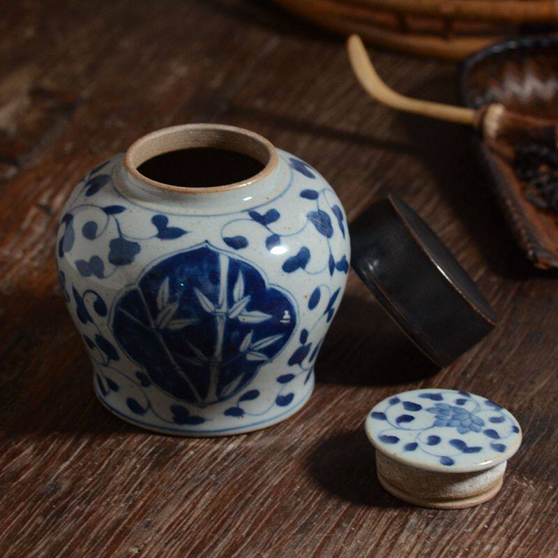 Jingdezhen Hand-painted Green Flower Ceramic Tea Leaf Jars Imitation Ancient Coarse Pottery Storage Tank Retro Tea Tea House House of Residence Pendulum