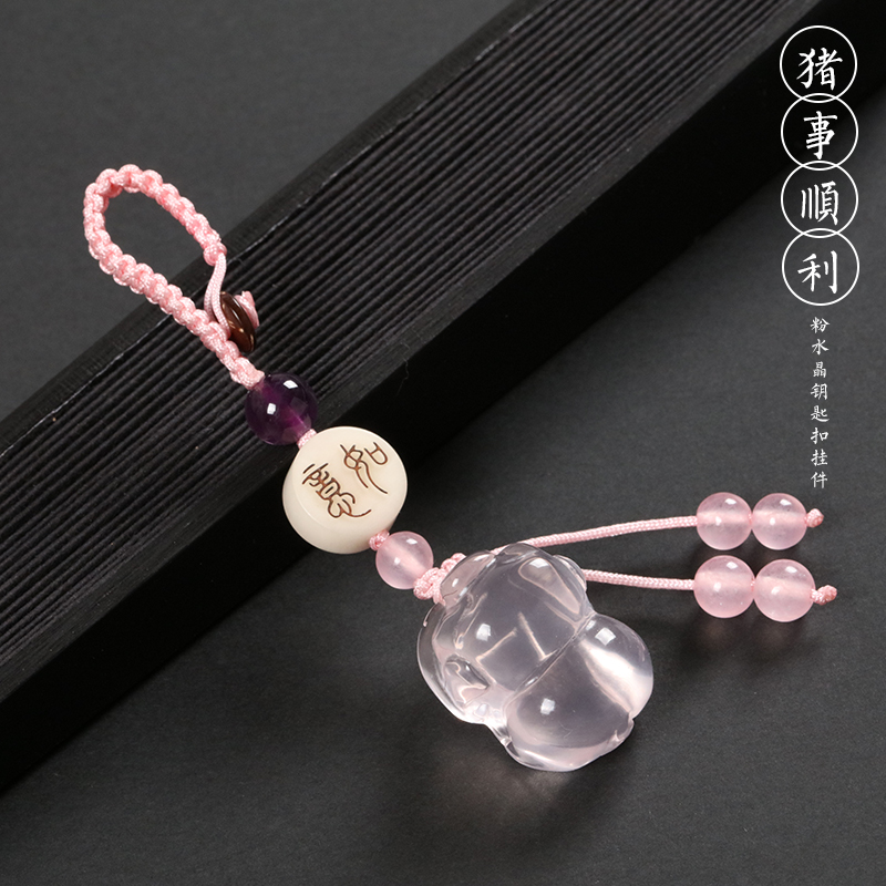 Natural Powder Crystal Cute Little Pig Car Key Buckle Pendant Cute Lady Bag bag hanging decoration Merchants Pendant Ornament