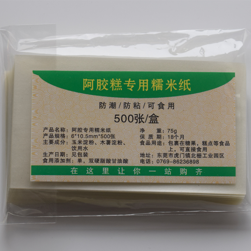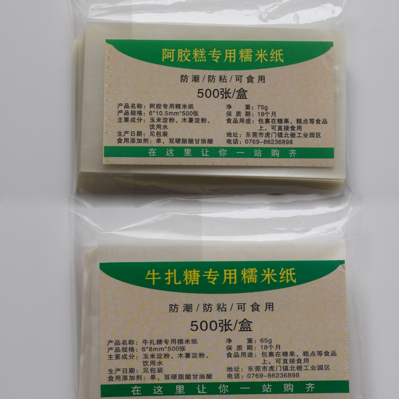 Bagged 500 pieces of glutinous rice paper (6 * 8) bagged 500 pieces of glutinous rice paper (6 * 10 5) boxed 500 sheets of glutinous rice paper (6 * 8) boxed 500 sheets of glutinous rice paper (6 * 10