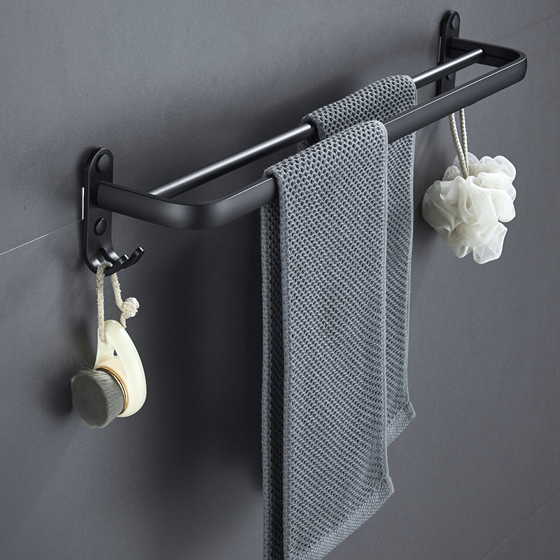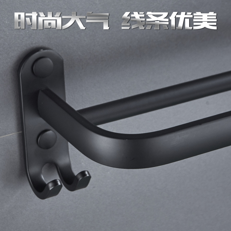 Black towel rack bathroom toilet shelf space aluminum towel rack pendant towel bar free punching hook rod