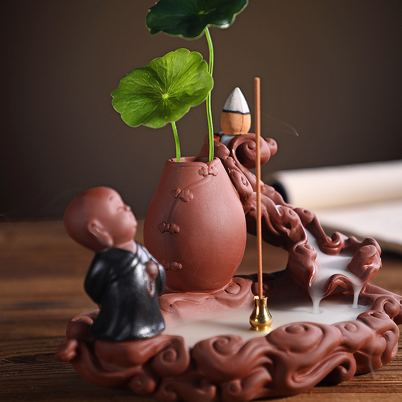 Dragon instrumental creative ceramic turn-back incense stove pendulum piece Zen Serie small monk indoor purifying air sandalwood Fragrant Incense Stove-Taobao
