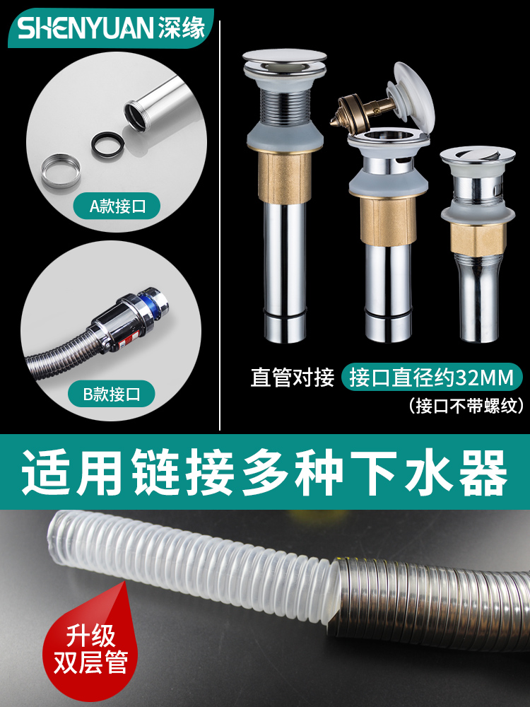 Stainless steel wash basin downpipe anti-odor leak plug drain pipe basin wash basin water sink accessories