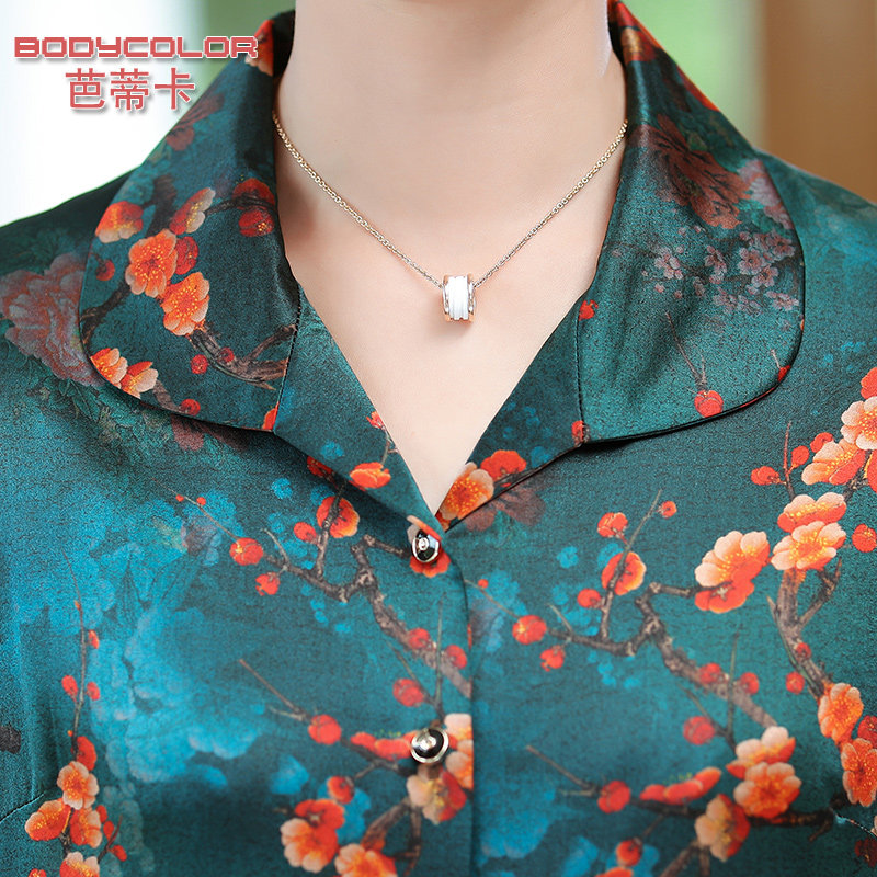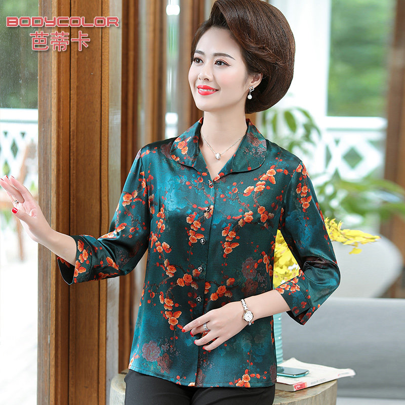 2022 new mother spring and autumn silk top middle-aged and elderly women's mulberry silk shirt grandma dress old lady clothes