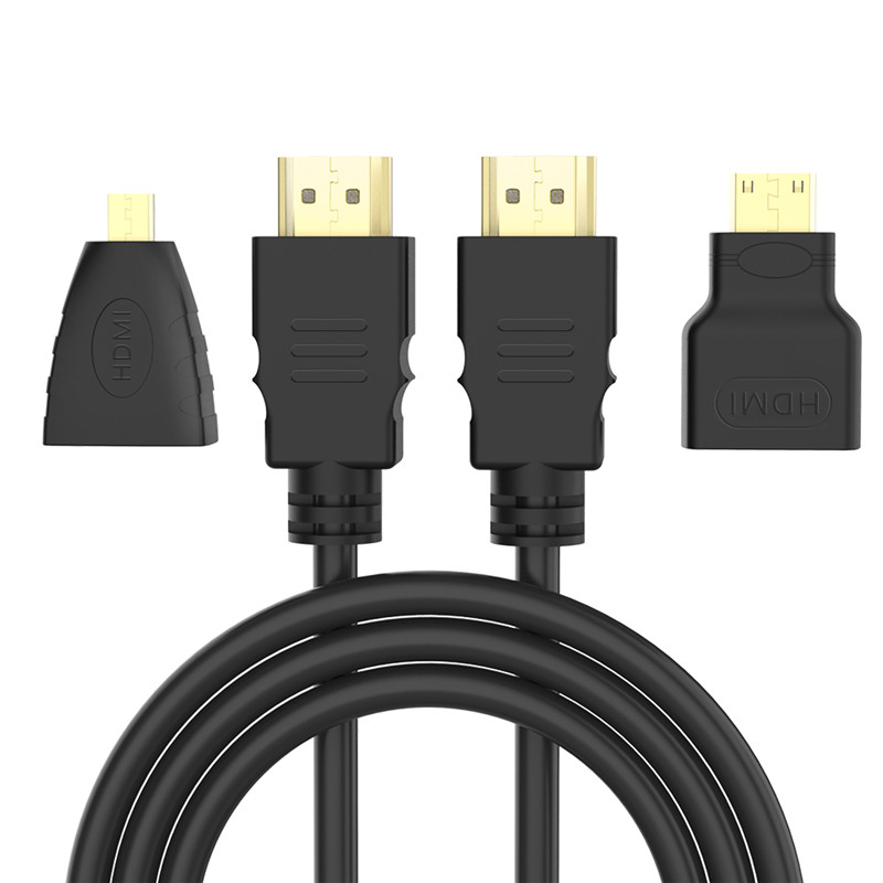 Three-in-one HDMI high-definition data line HDMI transfer micro mini switching line connecting head small turns 1 5 m