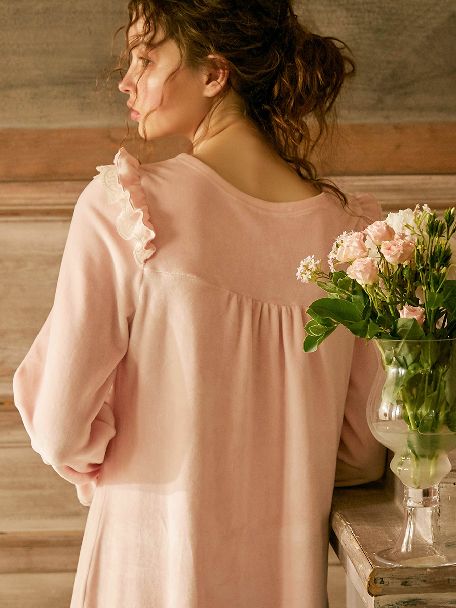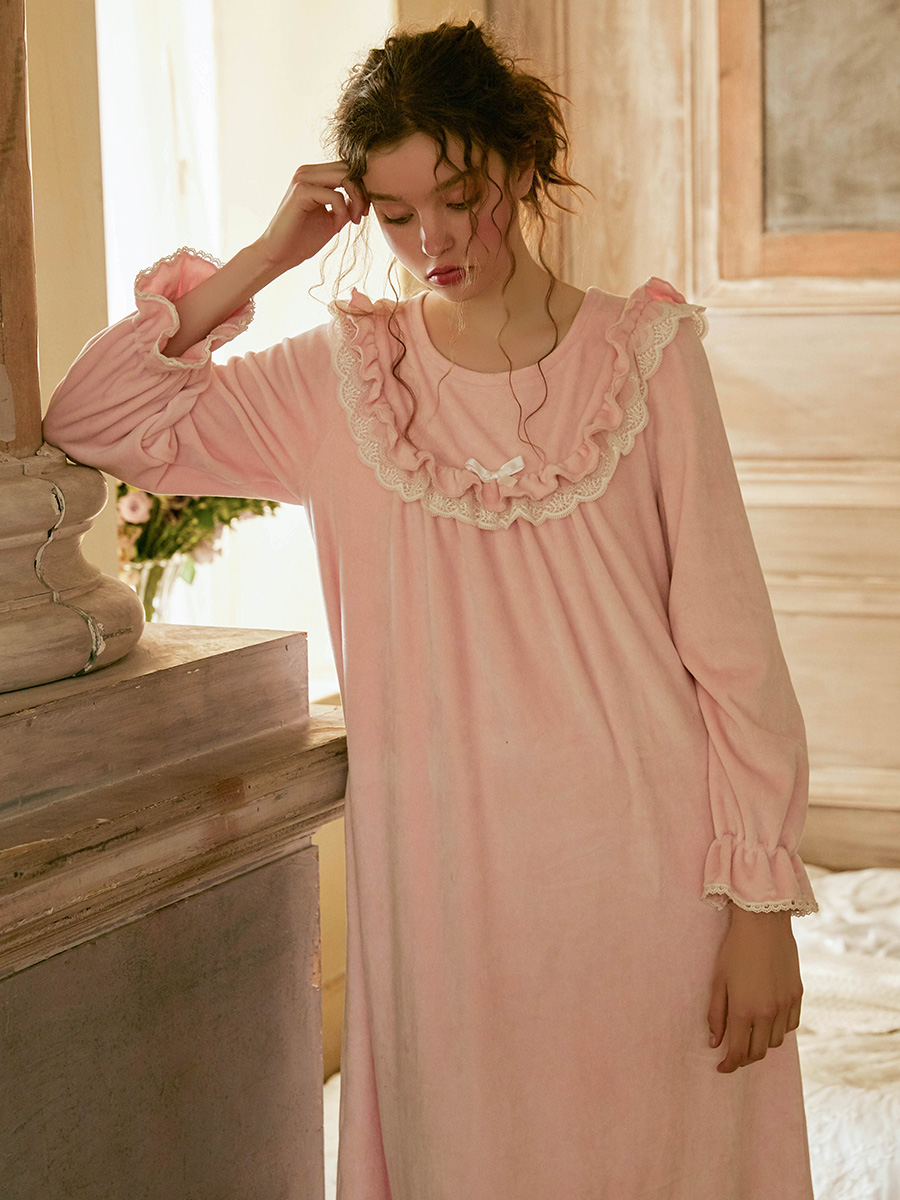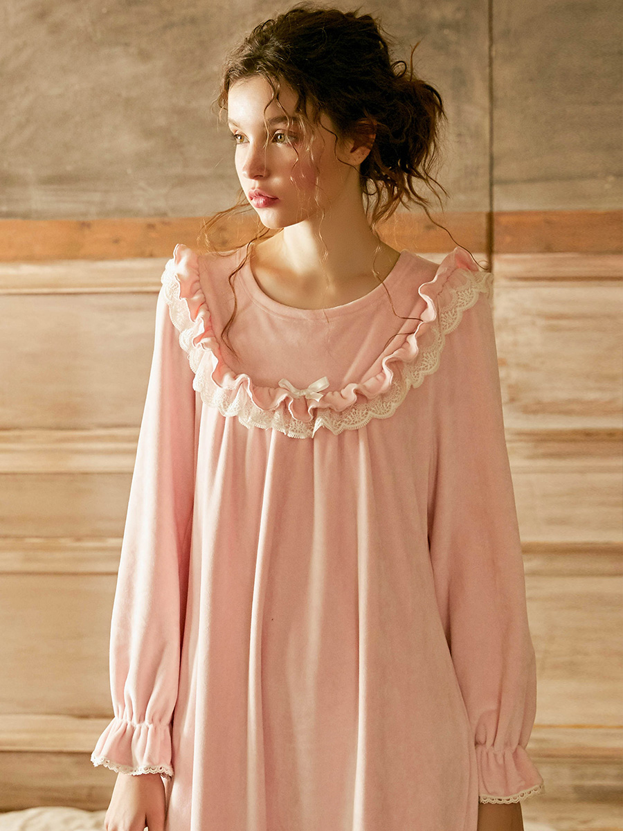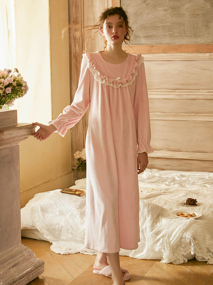 Dust Xi original autumn and winter palace long-sleeved island velvet night dress cute princess loose warm home clothes pajamas for women