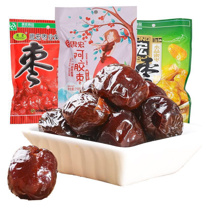 Thinking macro-donkey-ass date non-nuclear honey date 252g Cangzhou special production crystal nuclear-free date candied fruit Xinjiang red date casual snacks