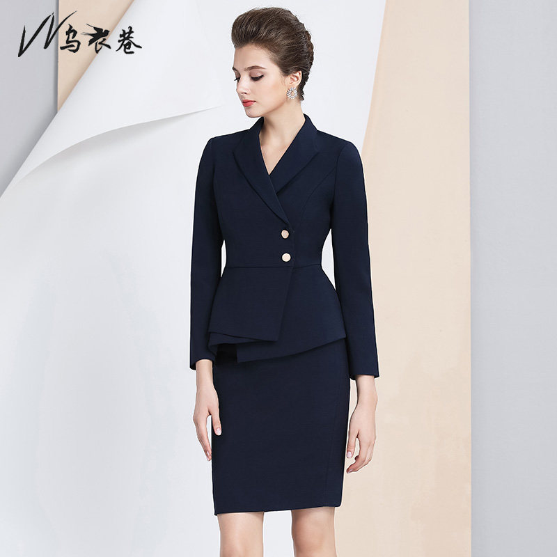 Ouchou Alley Spring Autumn Women's Section Professional Cover Skirt Long Sleeve Fashion Display Slim White Collar Tooling Suit Women's Professional Dress Work Suit