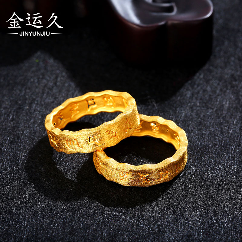3D Hard Gold Gold Six-character Mantra Proverbs Ring 999 Foot Gold Daming Curse Gold Ring Couple Ring