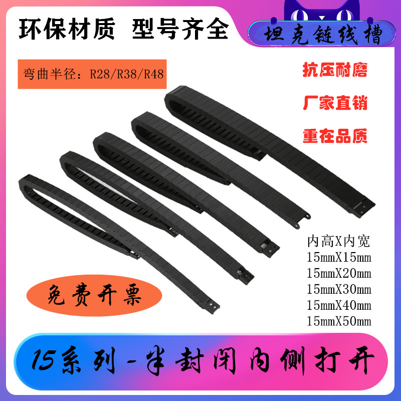 Machine bed towline Reinforced nylon tank chain engraving machine Engineering plastic towline semi-closed 15 series 15*20