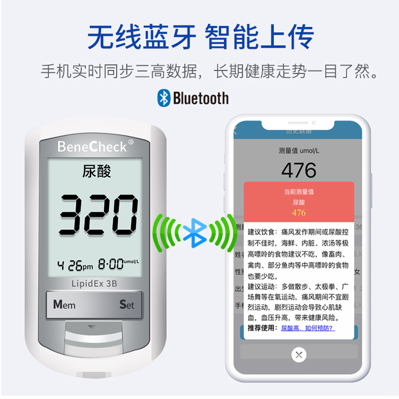 Bluetooth three-function analyzer uric acid blood glucose cholesterol test paper 1 box each (uric acid plus 1 box) Bluetooth three function analyzer uric acid test paper 1 box (uric acid plus 1 box) Bluetooth three function analyzer