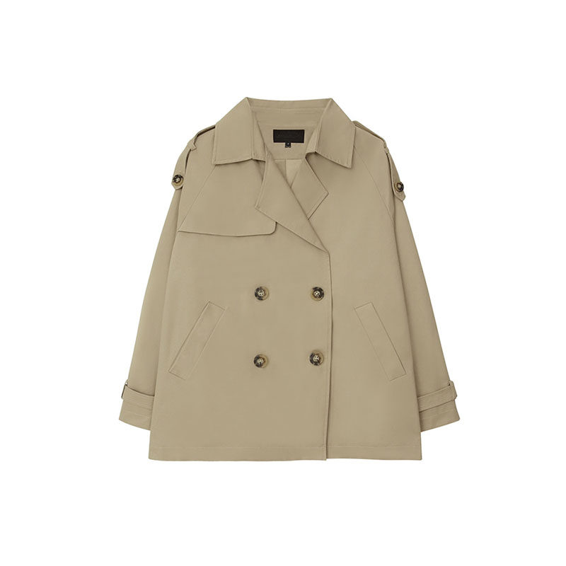 Short version of the wind coat Small taller The high 2021 early autumn popular card with its color coat and double-row button start season jacket