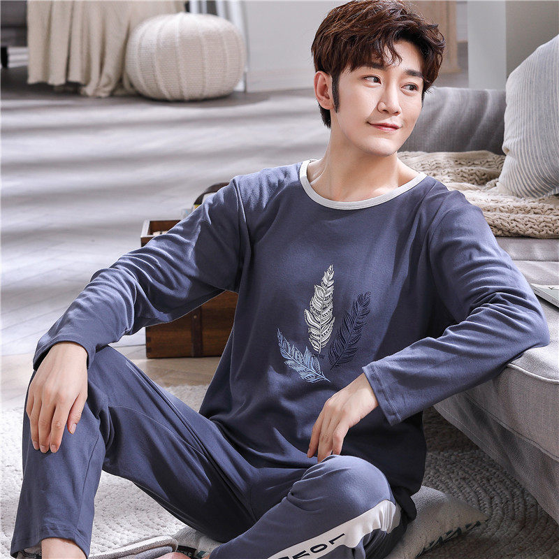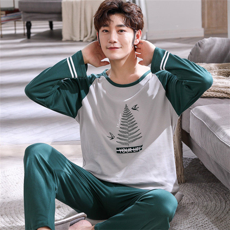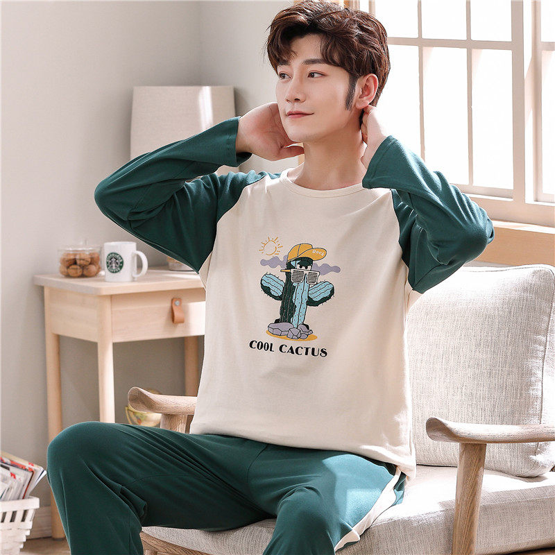Camouflak fish fall new full cotton long sleeve pyjamas men's sleeve head pure cotton home for spring and autumn youth loose suit-Taobao