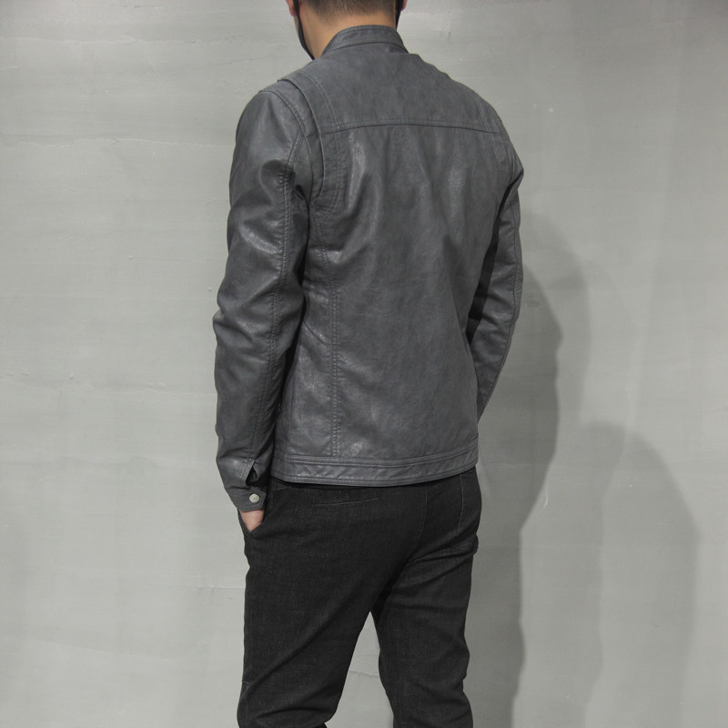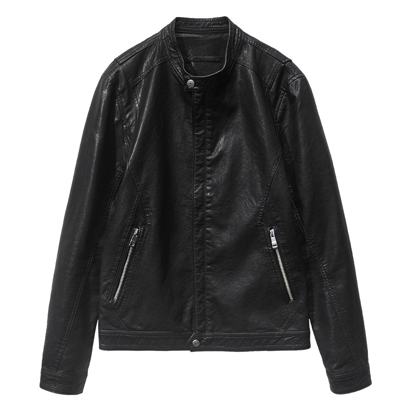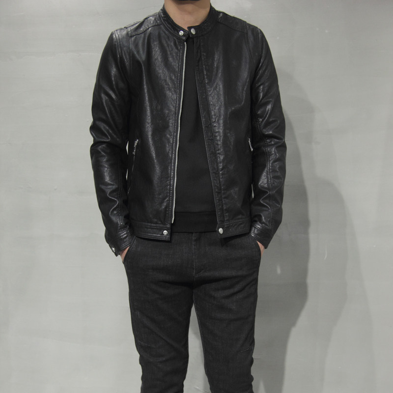 Autumn-Winter Line Leather Clothes Men's Trend PU Leather Cover Han Tide Cutting Leather Jacket Simply Little