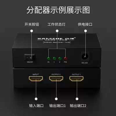 Shanze HDMI splitter one in two out 1 in 2 out 4K high-definition one-point two video 1080P splitter 1 point 2