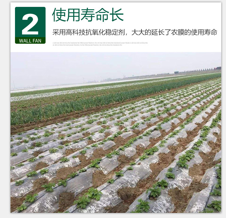 Silver and black bi-color 0.6 meters wide 2 silk thickness 20 kg 700 meters long silver black bi-color 0.8 meters wide 20 kg 2 silk thickness 520 meters long silver black bi-color 1 meter wide 20 kg 2 silk thickness 420 meters long silver black two-color 1.2 meters wide 20 kg 2 silk thickness 350 meters long silver black bi-color 1.5 meters wide 20 kg 2 silk thickness 280 meters long silver black two-color 20 kg 2 silk thickness 210 meters long silver black two-color 0.6 meters wide 10 pounds 1.2 silk thickness 500 meters long silver black two-color 0.8 meters wide 10 pounds 1.2 silk thickness 375 meters long silver black two-color 10 pounds 10 pounds 1.2 silk thickness 250 meters long silver black two-color 1 .5 meters wide 10 pounds 1.2 silk 200 meters long silver black two-color 2 meters wide 10 pounds 1.2 silk thickness 150 meters long all black mulch film 0.6 meters wide 20 kg 1.4 silk thickness 900 meters long all black mulch film 0.8 meters wide 20 kg 1.4 silk thickness 670 meters long all black mulch film 1 meter Width 20 kg 1.4 wire thickness 540 meters long all black mulch film 1.2 m wide 20 kg 1.4 wire thickness 450 m long all black mulch film 1.5 m wide 20 kg 1.4 wire thickness 350 m long all black mulch film 2 m wide 20 kg 1.4 wire thickness 270 m long all black mulch film 0.6 m wide 10 kg 1 wire thickness 800 m long all black mulch film 0.8 m wide 1 wire thickness 10 kg 600 m long all black mulch film 1 m wide 10 kg 1 silk thickness 500 meters long all black mulch film 1.2 meters wide 10 kg 1 silk thickness 415 meters long all black mulch film 1.5 meters wide 10 kg 1 wire thickness 340 meters long white mulch film 20 kg a roll 0.8 silk thickness remarks