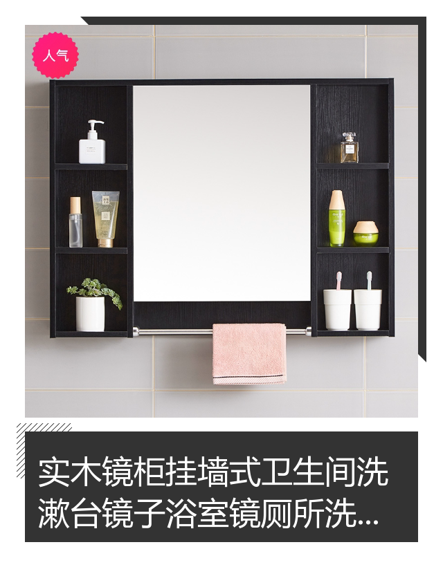 Solid wood mirror cabinet wall-mounted toilet washstand mirror bathroom mirror toilet wash vanity mirror storage shelf