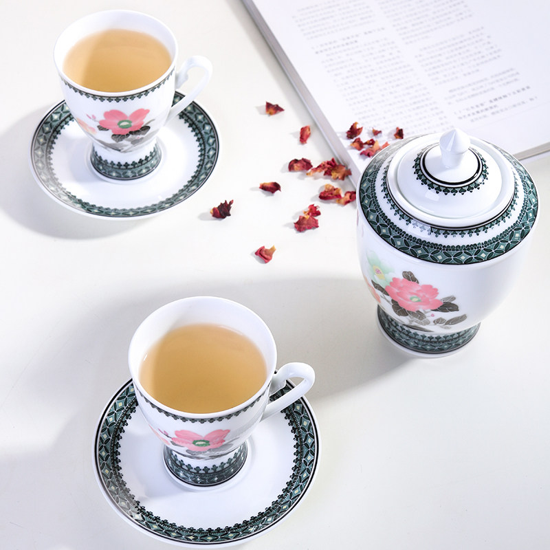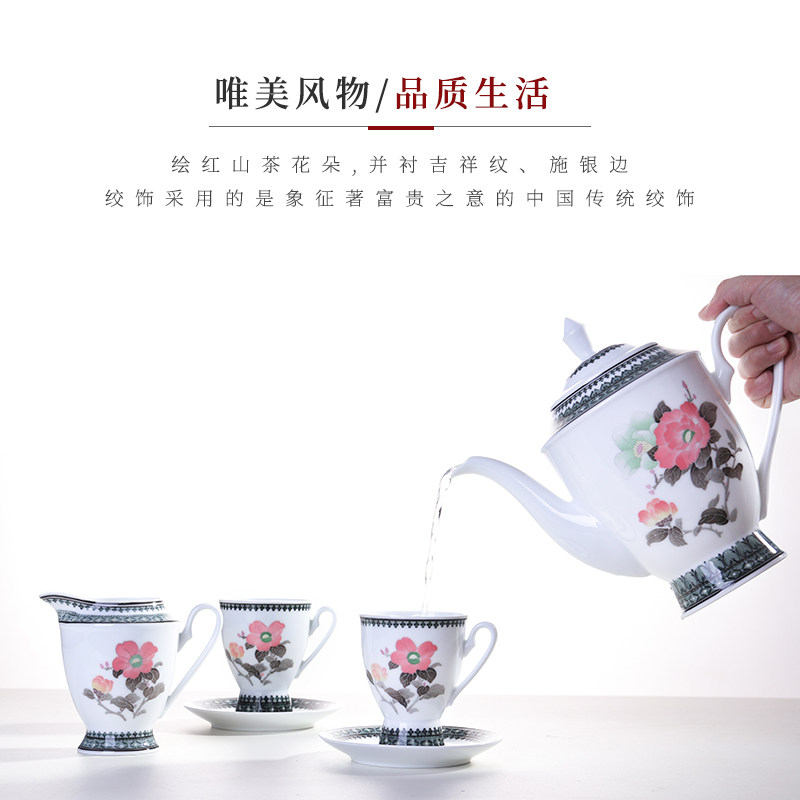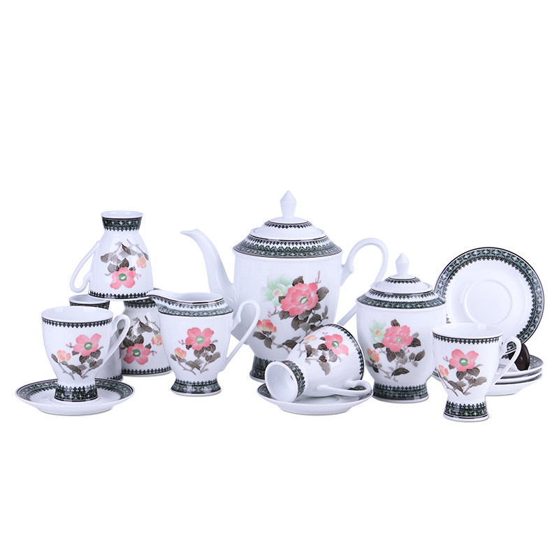 Liling Ceramic Ware Glaze Lower Color Hand-painted Mountain Tea Flowers 15 Pieces Of Friendship Tea Set Coffee Cup Suit Eu Style Little Extravagant