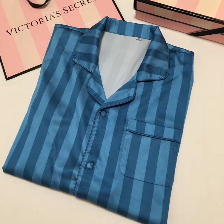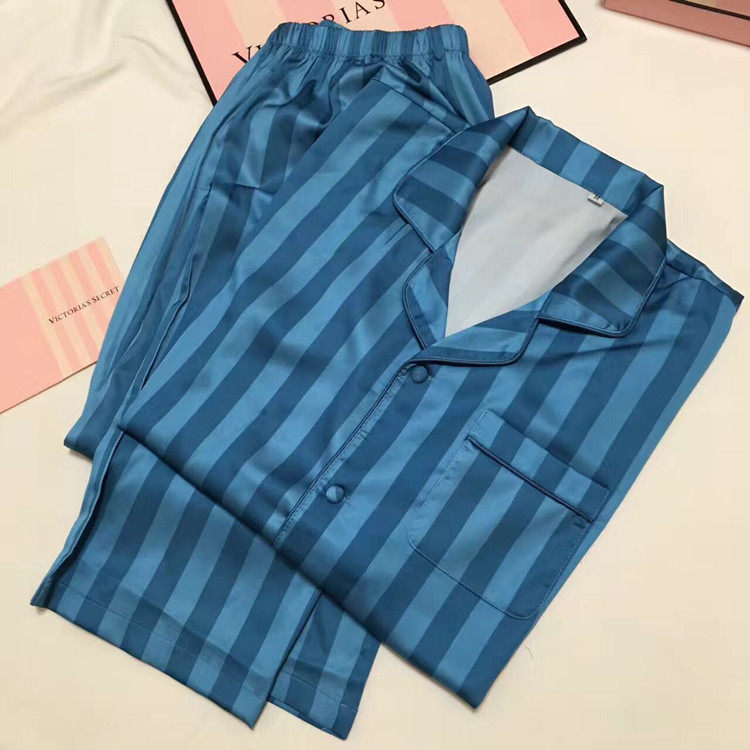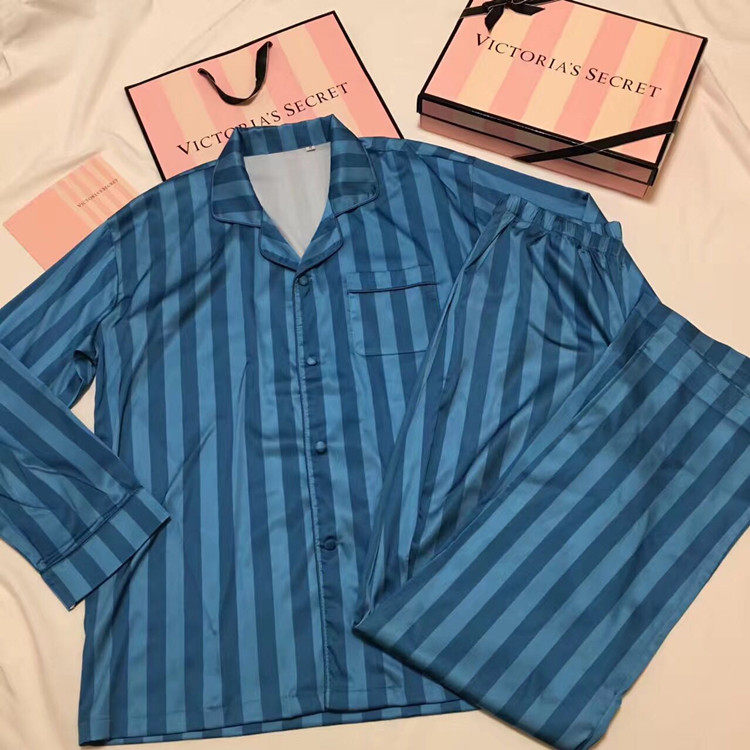 Ice silk sleepwear men's spring and autumn long sleeves thin strips of streaks men's large size two style suit brands Home Clothing Stars Same Money