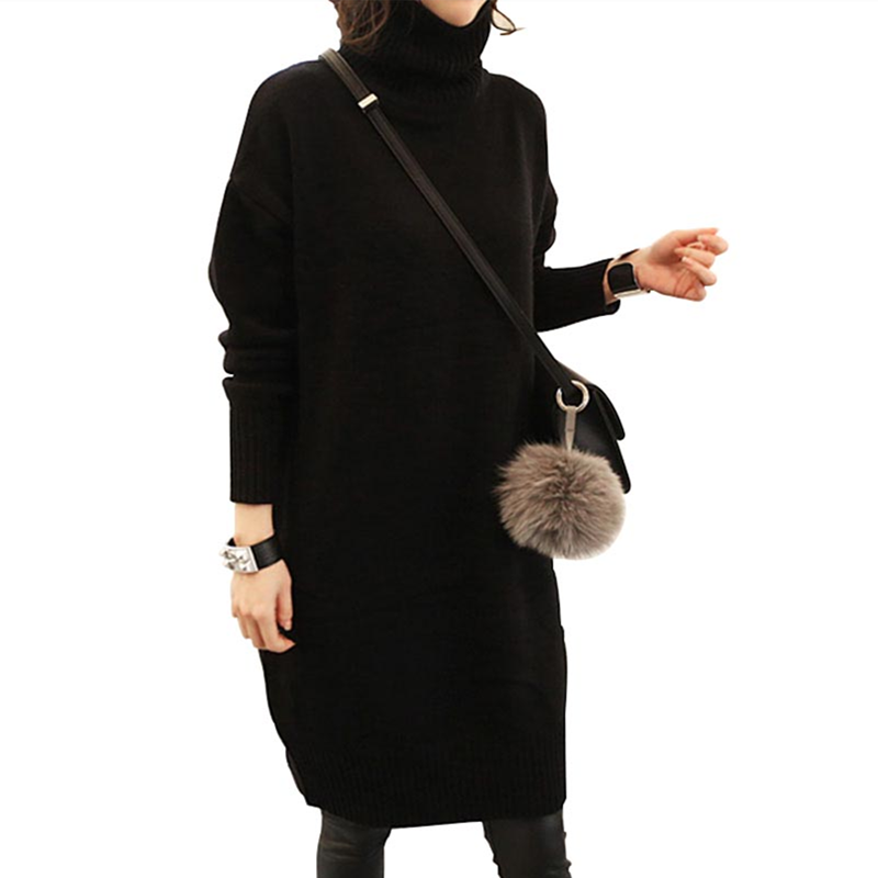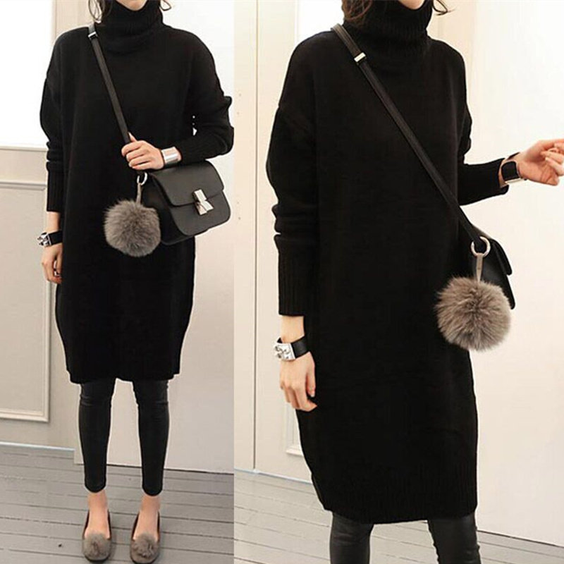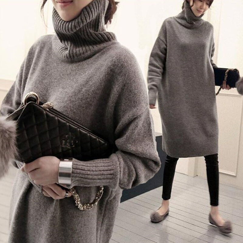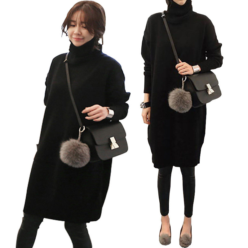 Pregnant women sweaters Long version of the long version of autumn and winter clothes loose Korean version gestation woman dress with large size and high collar thickened needling cardiovert