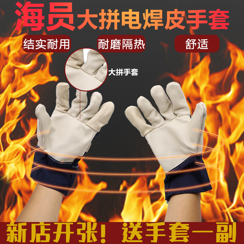 Durable sailor gloves big fight welding gloves wear-resistant cowhide gloves labor insurance heat insulation protection gloves comfort supplies