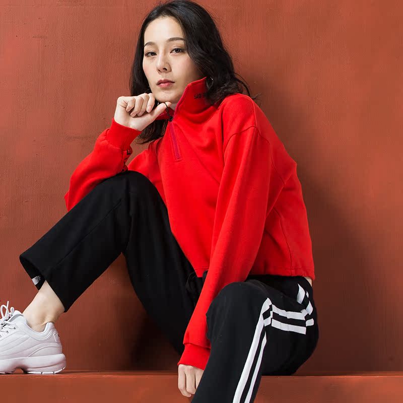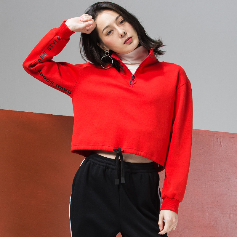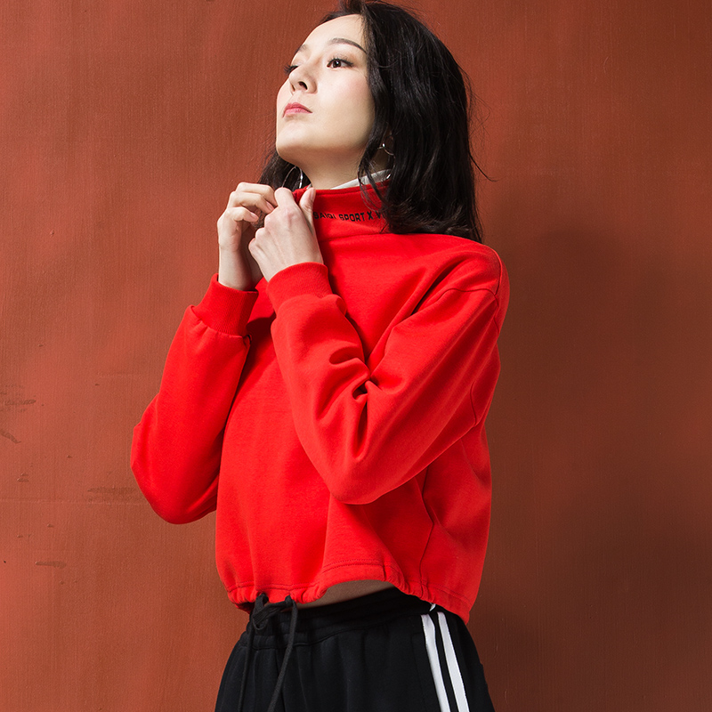 Seki casual thick cotton woman spring new long sleeve blouse high collar cover headshirt trendy short Korean version women's jacket