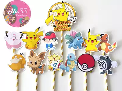 Po Meng Po Ke Meng Pikachu Party Supplies Guest Hats Birthday Candles Theme listed cake decoration