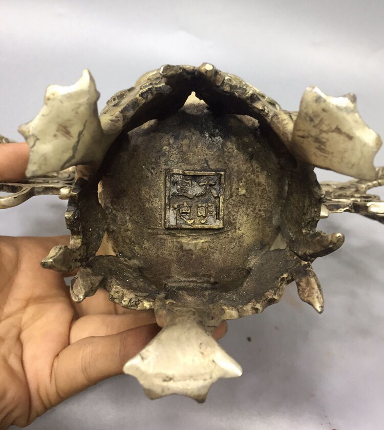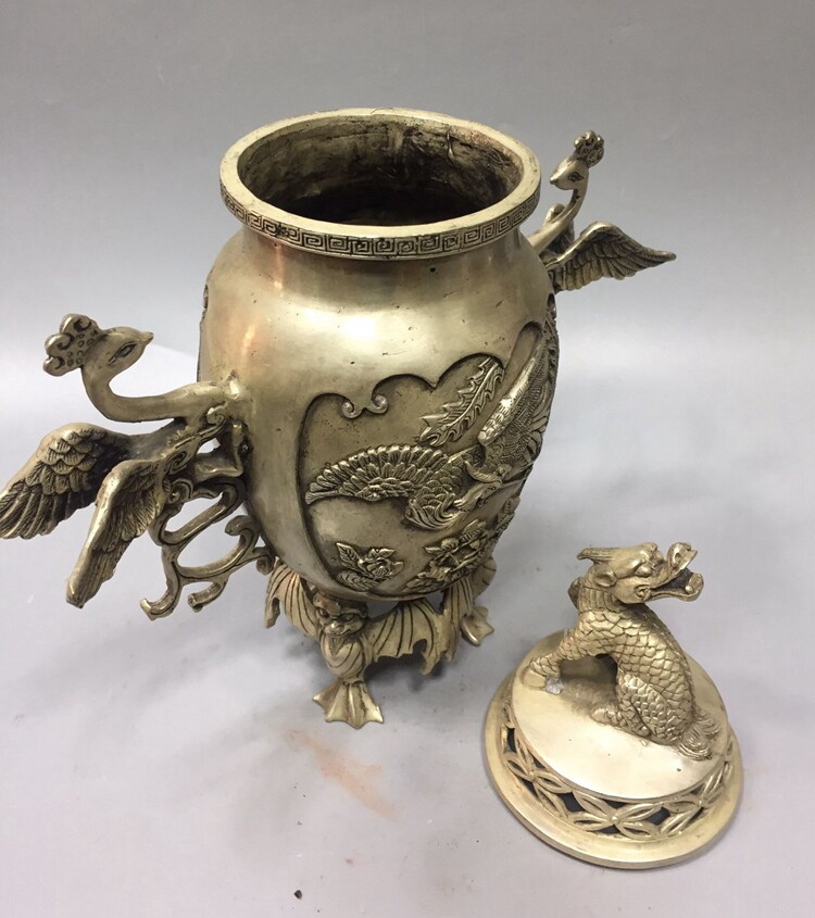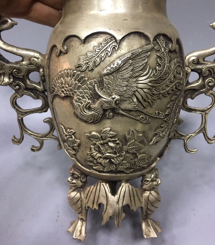 Antique pure copper collection Fine bronze Handmade home decoration Brass white copper silver-plated Phoenix vase incense burner