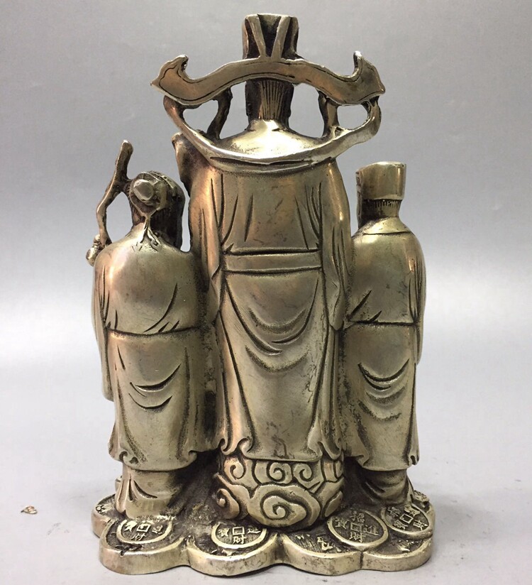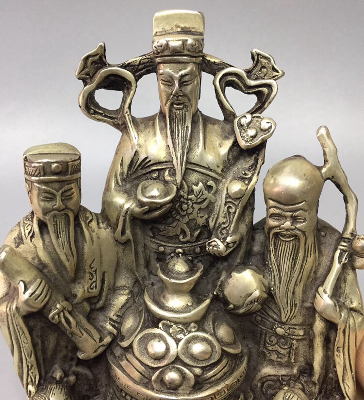 Antique collection Fine white copper silver plated copper ornaments Pure copper Fu Lu Shou Cornucopia home furnishings