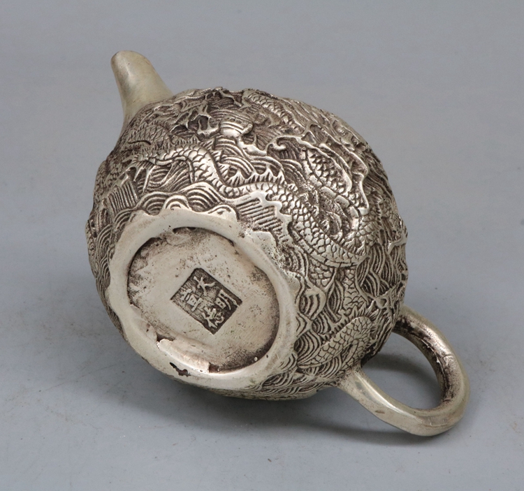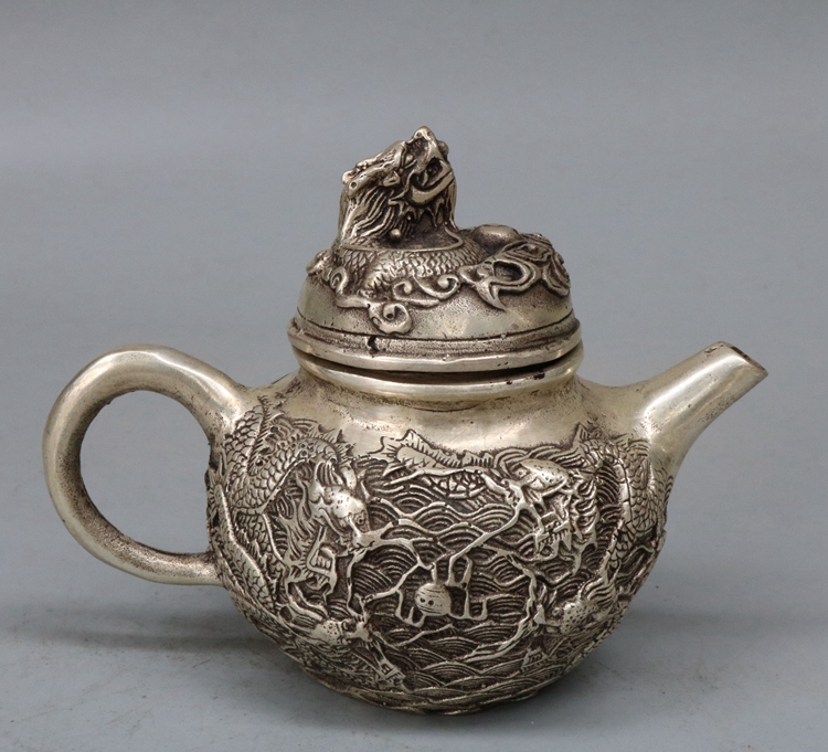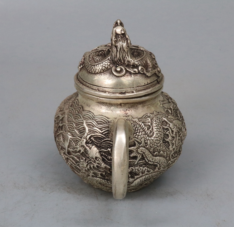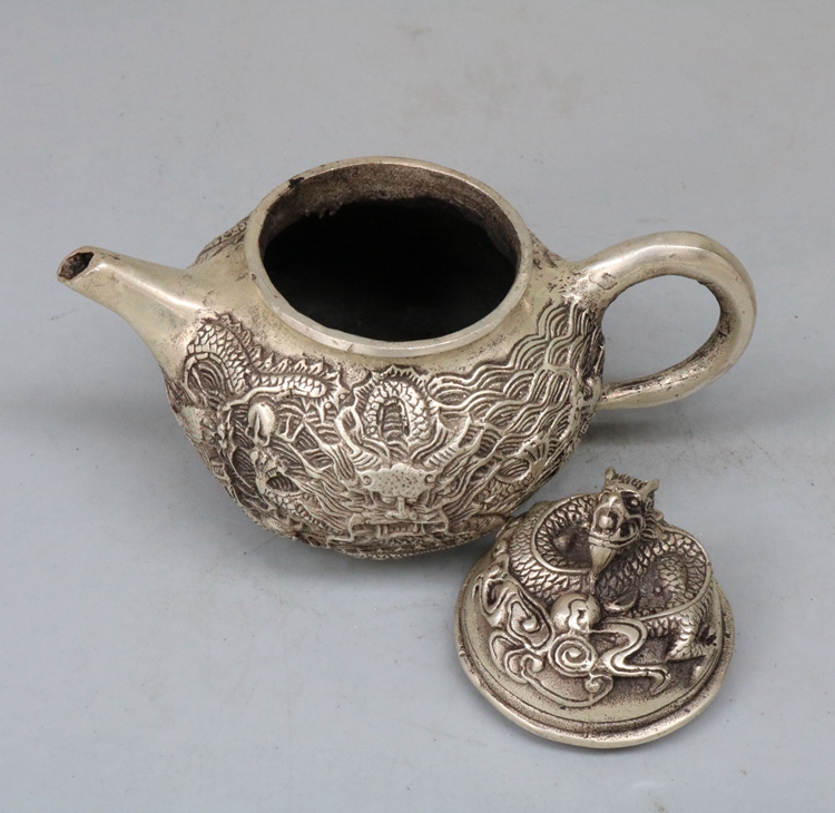 Antique bronze Qianlong Year pure copper Panlong Copper kettle Kettle Teapot White copper antique home decoration collection