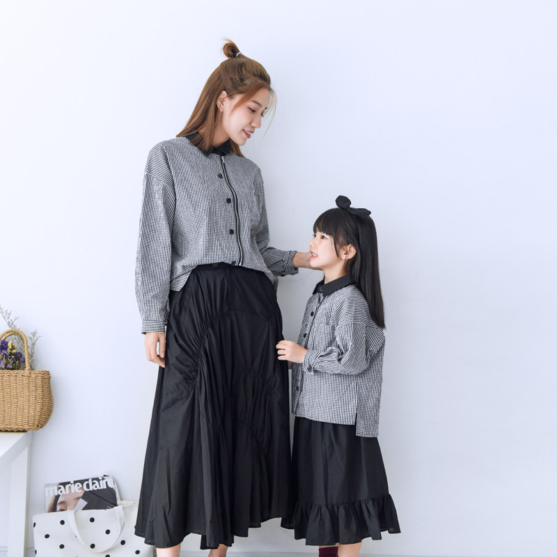 2023 Spring New Cotton Black and White Plaid Shirt Skirt Parent-child Dress Literary Western-style Mother-Daughter Set