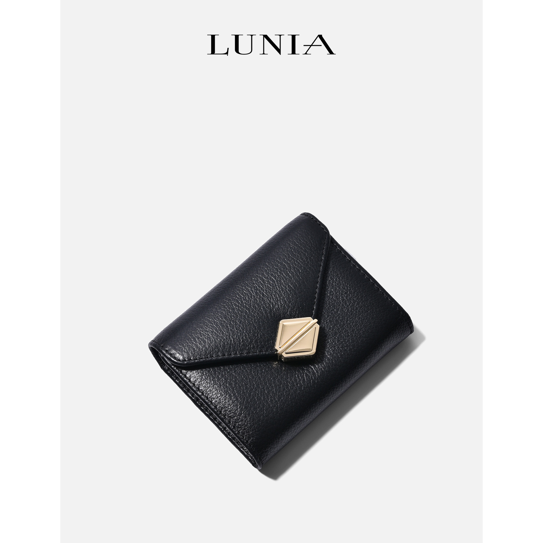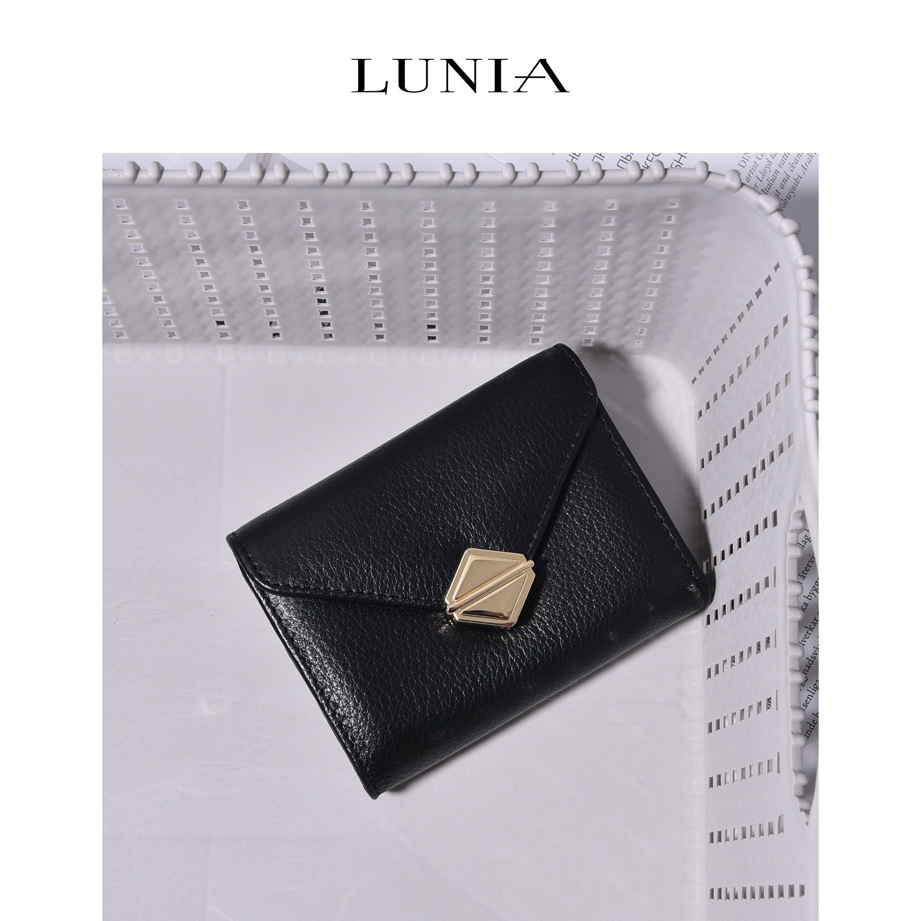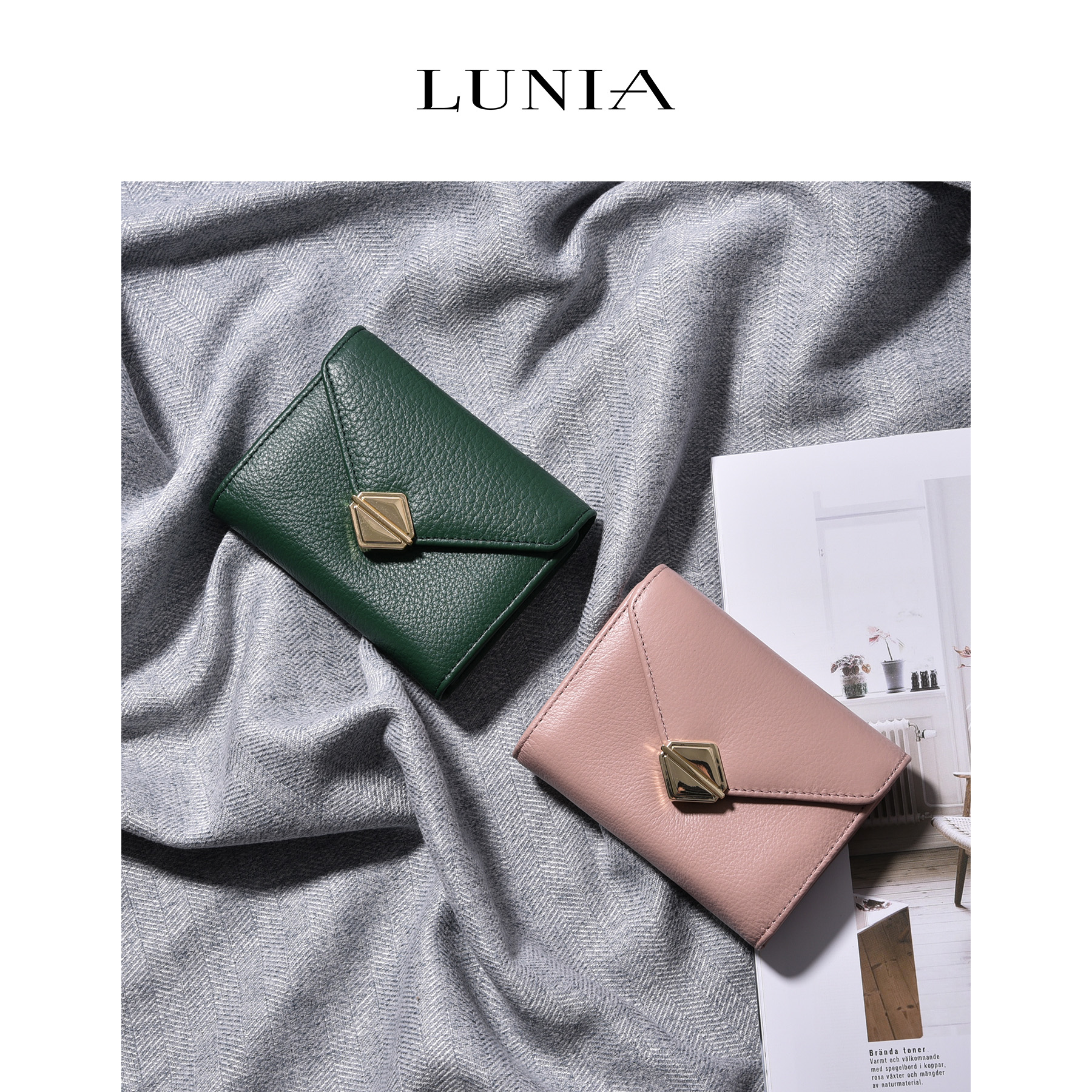 ins Japan-ROK minimalist genuine leather wallet female short draw chain by buckle leather clip fashion zero wallet cow leather small money clip